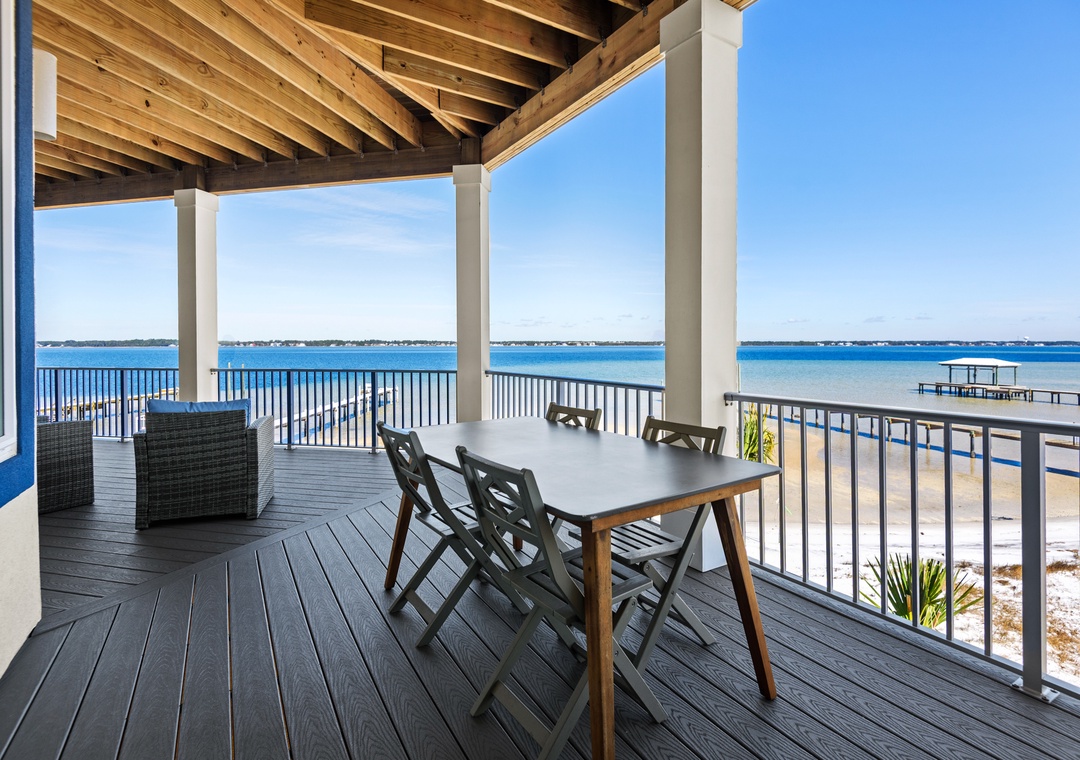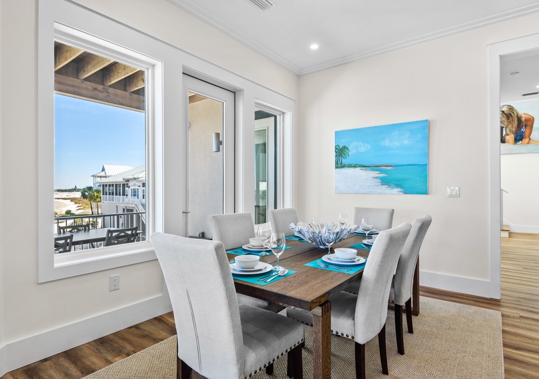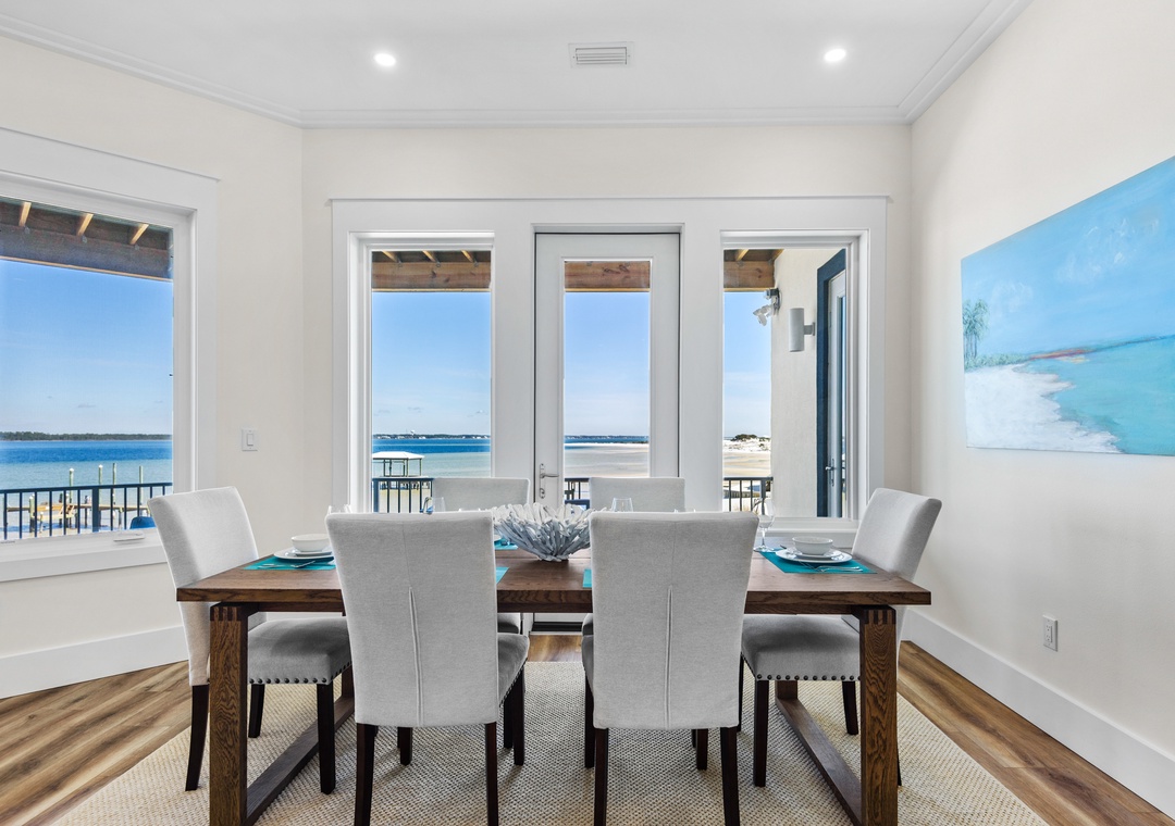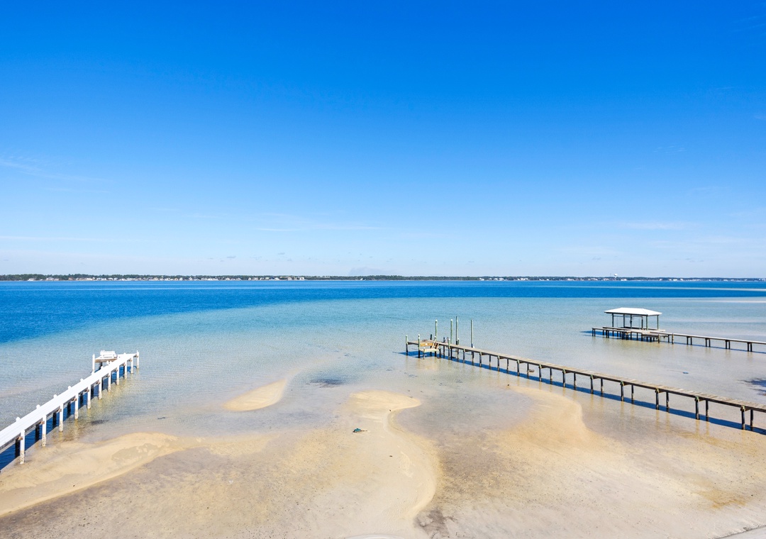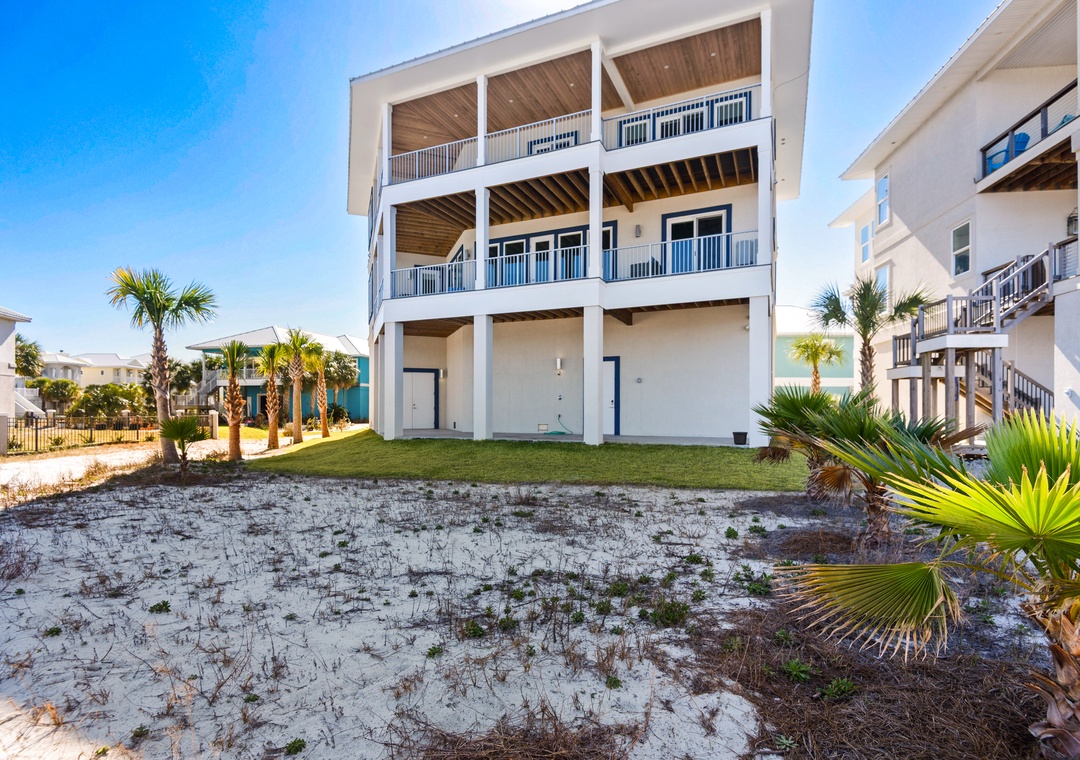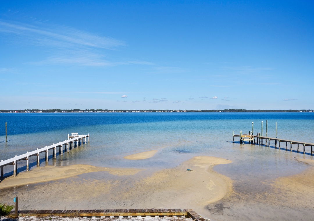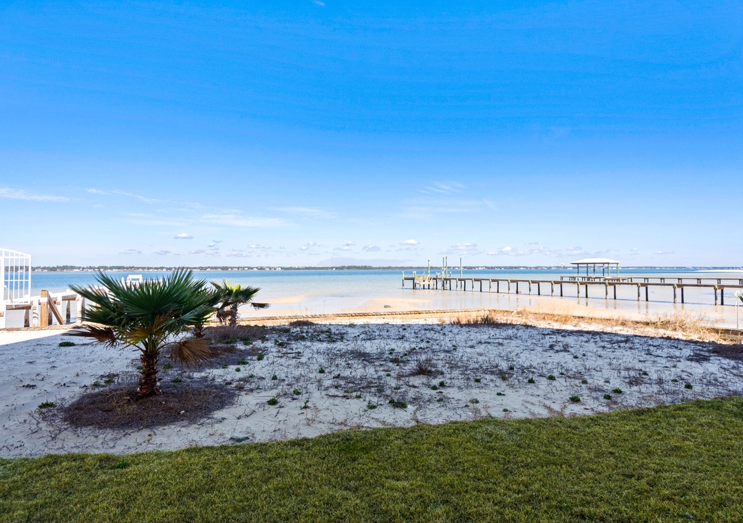 Welcome to An Island in the Sun, a charming and one-of-a-kind beach home just a short stroll from the emerald waters and sugar-white sands of Navarre Beach, offering beautiful sound views with stunning sunrises and sunsets. This inviting retreat accommodates up to 10 guests and features a bright, open-concept layout that seamlessly connects the living, dining, and fully equipped kitchen areas, making it easy to prepare anything from a quick breakfast to a family dinner. Sleeping arrangements include, on the first floor, a master bedroom with a queen bed and a guest bedroom with a queen bed, and on the second floor, a master bedroom with a king bed, a guest bedroom with a twin-over-full bunk bed, and an additional guest bedroom with a queen bed. Located in a gated soundside community, guests also enjoy access to a community pool and tennis courts, making An Island in the Sun the perfect setting for a relaxing coastal getaway.