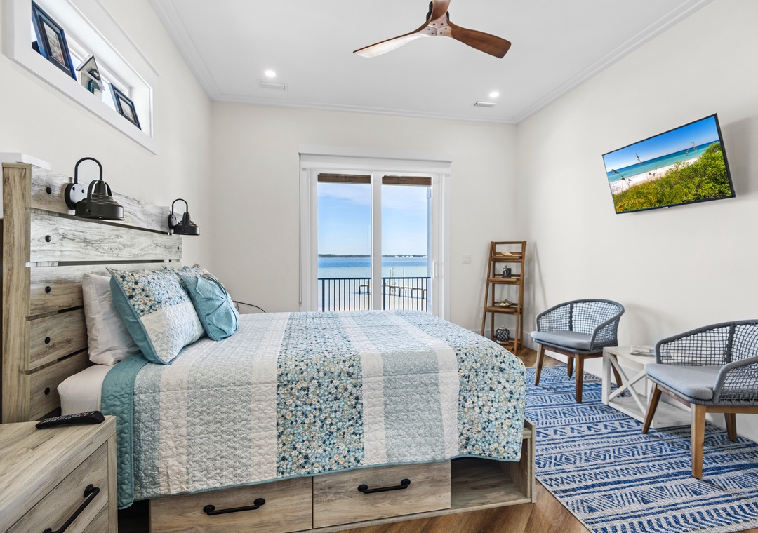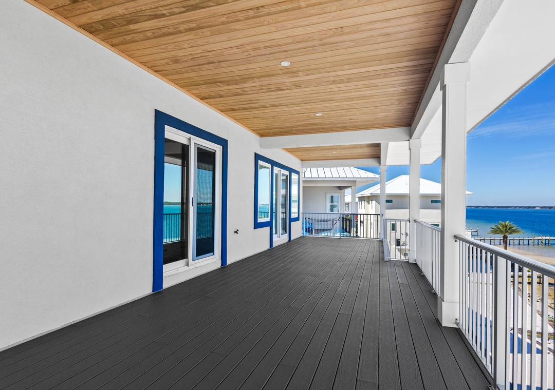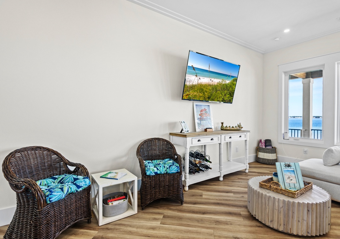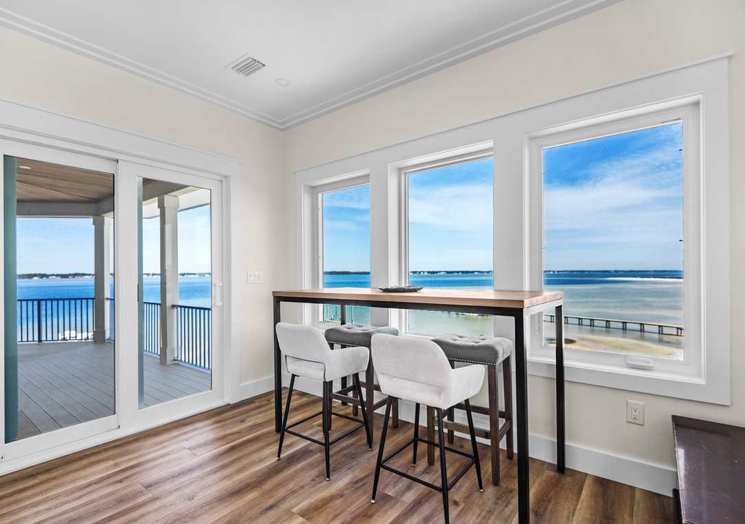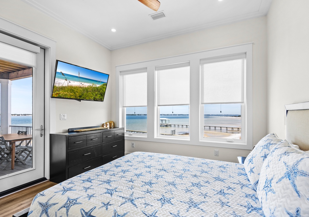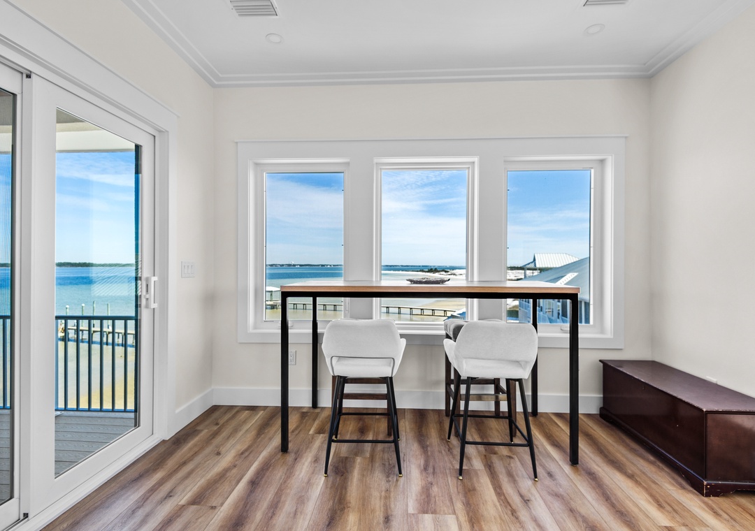 Welcome to An Island in the Sun, a charming and one-of-a-kind beach home just a short stroll from the emerald waters and sugar-white sands of Navarre Beach, offering beautiful sound views with stunning sunrises and sunsets. This inviting retreat accommodates up to 10 guests and features a bright, open-concept layout that seamlessly connects the living, dining, and fully equipped kitchen areas, making it easy to prepare anything from a quick breakfast to a family dinner. Sleeping arrangements include, on the first floor, a master bedroom with a queen bed and a guest bedroom with a queen bed, and on the second floor, a master bedroom with a king bed, a guest bedroom with a twin-over-full bunk bed, and an additional guest bedroom with a queen bed. Located in a gated soundside community, guests also enjoy access to a community pool and tennis courts, making An Island in the Sun the perfect setting for a relaxing coastal getaway.