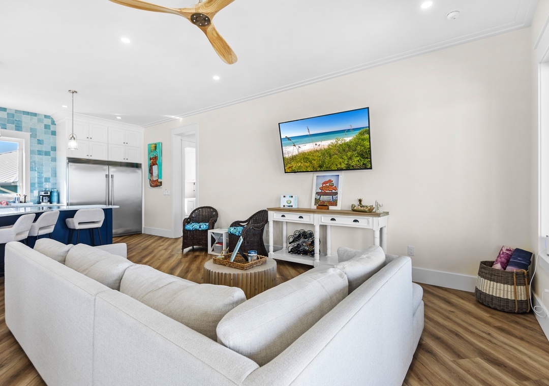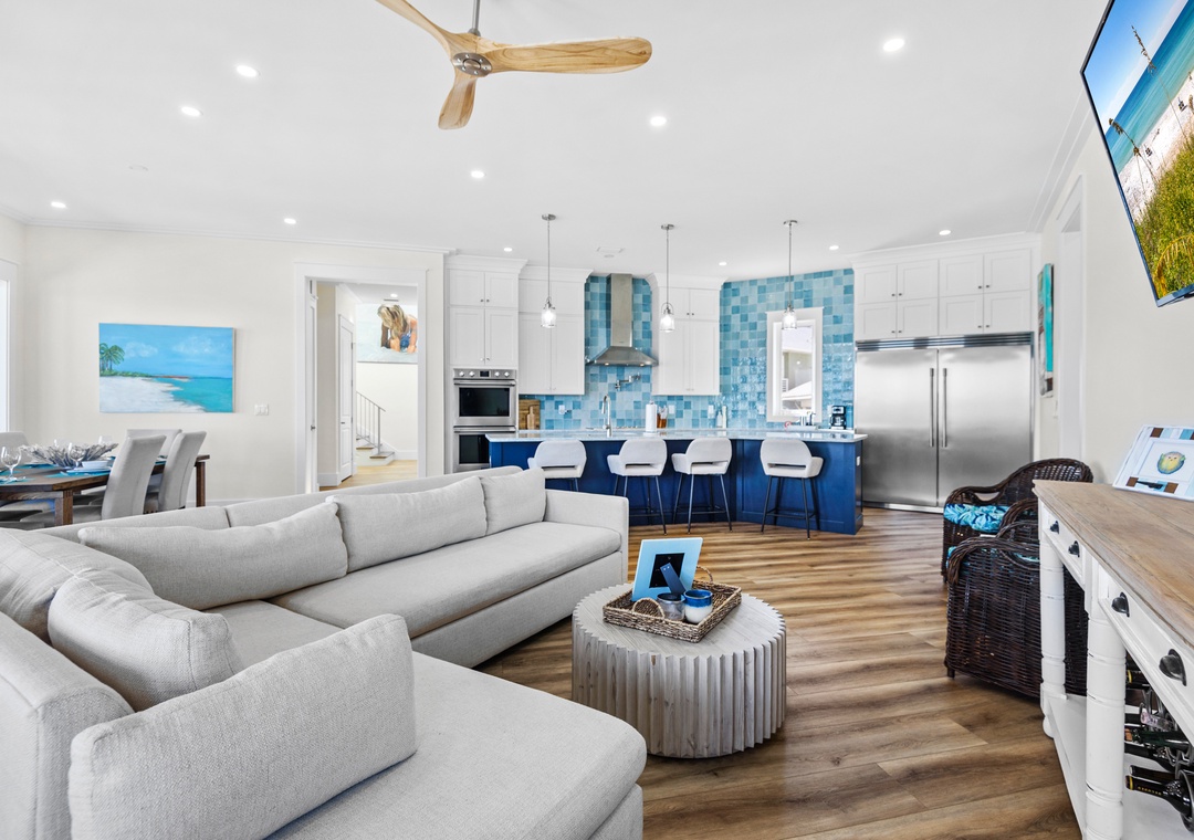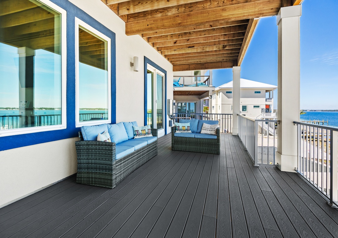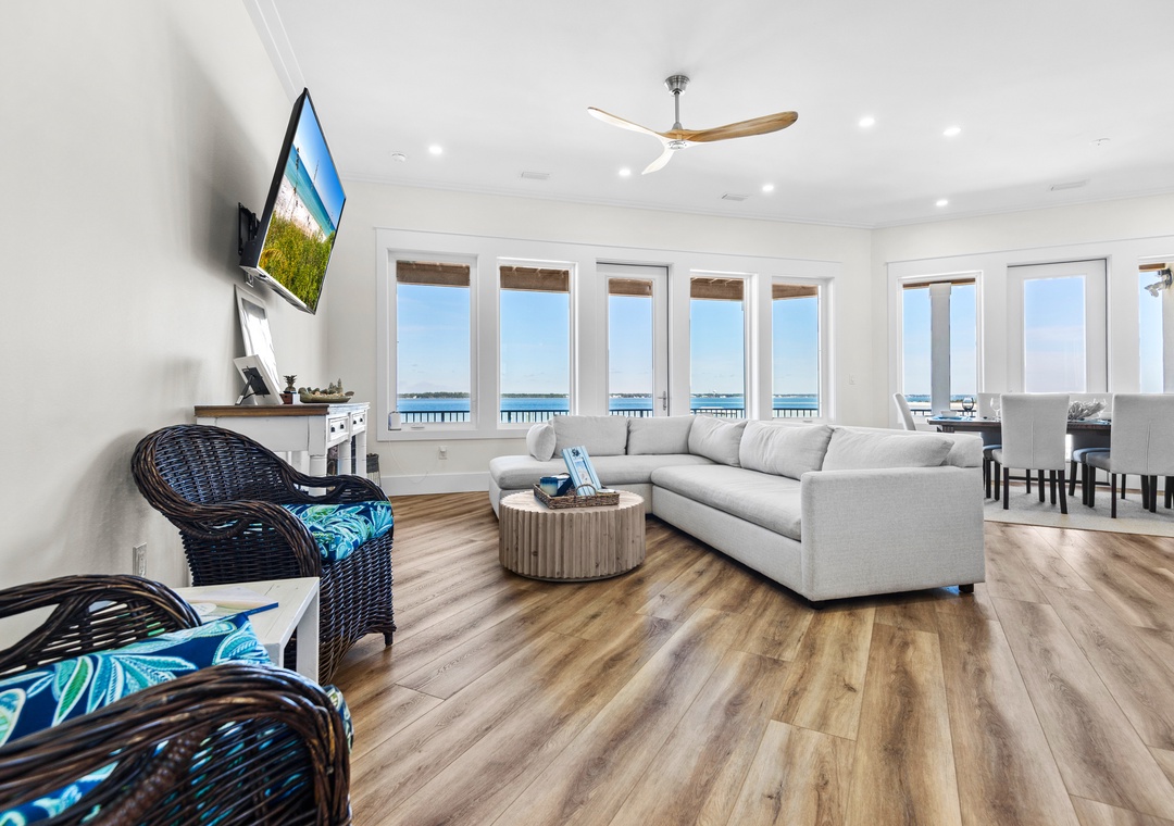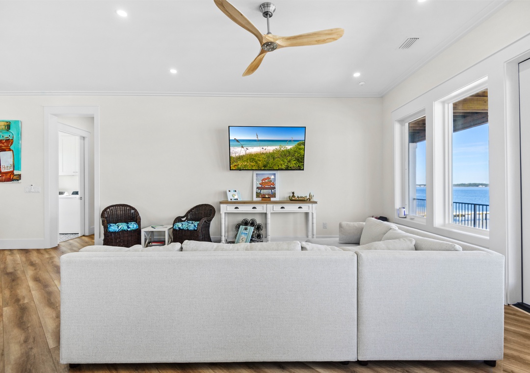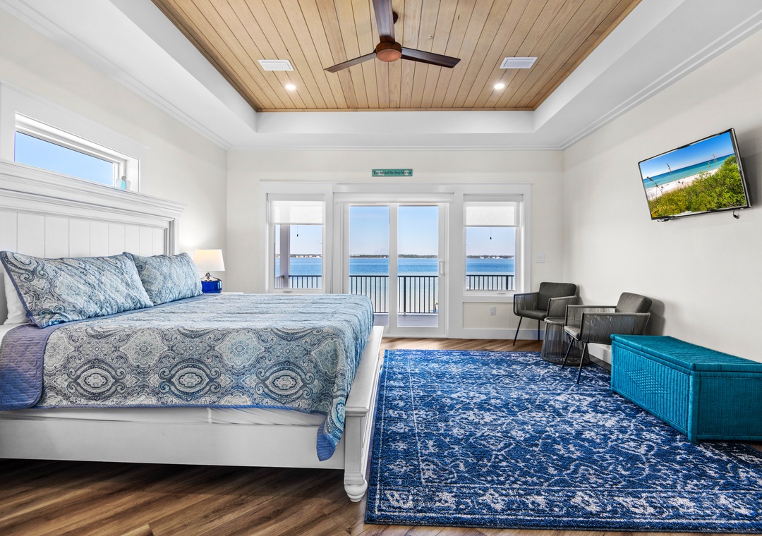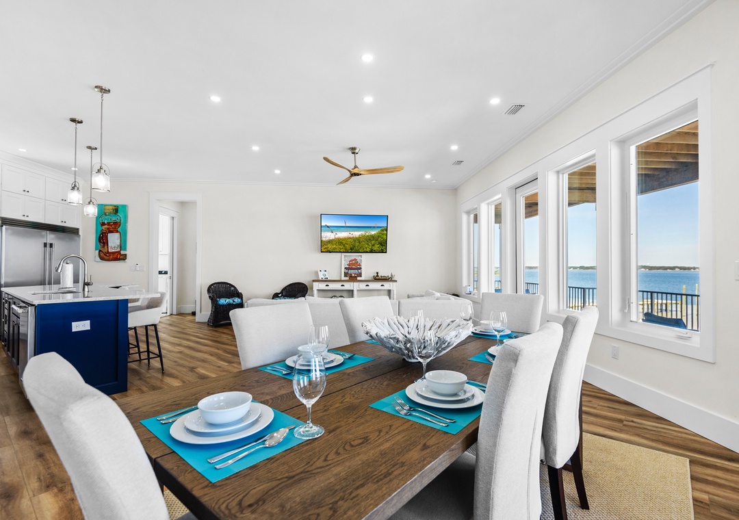 Welcome to An Island in the Sun, a charming and one-of-a-kind beach home just a short stroll from the emerald waters and sugar-white sands of Navarre Beach, offering beautiful sound views with stunning sunrises and sunsets. This inviting retreat accommodates up to 10 guests and features a bright, open-concept layout that seamlessly connects the living, dining, and fully equipped kitchen areas, making it easy to prepare anything from a quick breakfast to a family dinner. Sleeping arrangements include, on the first floor, a master bedroom with a queen bed and a guest bedroom with a queen bed, and on the second floor, a master bedroom with a king bed, a guest bedroom with a twin-over-full bunk bed, and an additional guest bedroom with a queen bed. Located in a gated soundside community, guests also enjoy access to a community pool and tennis courts, making An Island in the Sun the perfect setting for a relaxing coastal getaway.