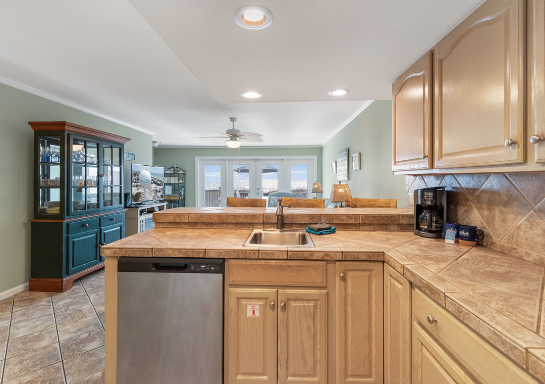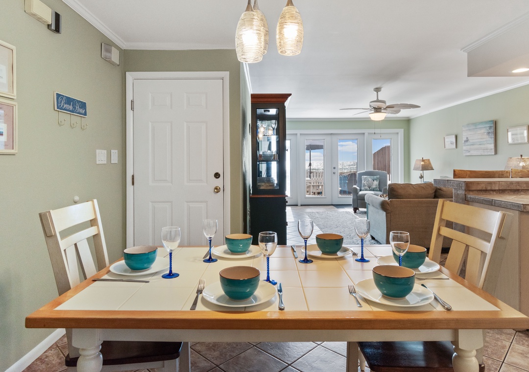 Watch the waves from the entire main floor, whether dining, playing games, cooking or just having a snack.