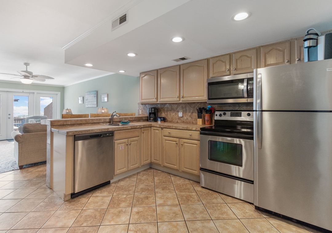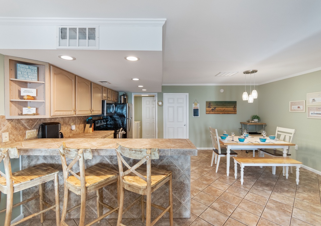 You ll find a well equipped kitchen, stainless steel appliances and plenty of counter space along with a breakfast bar seating 3.