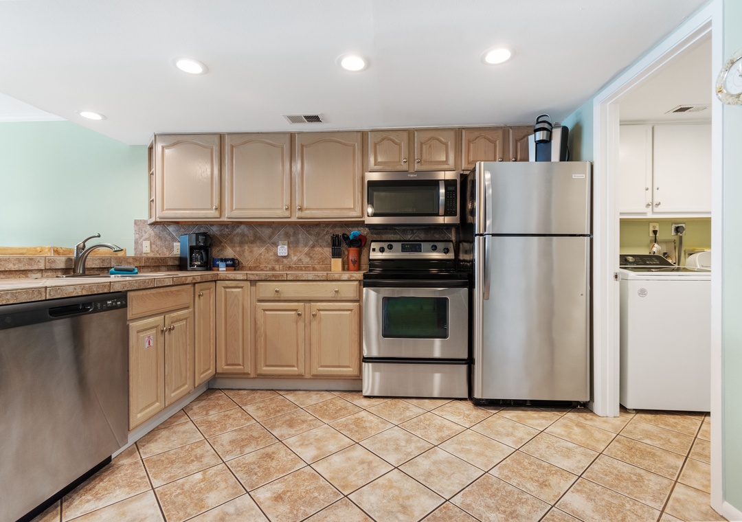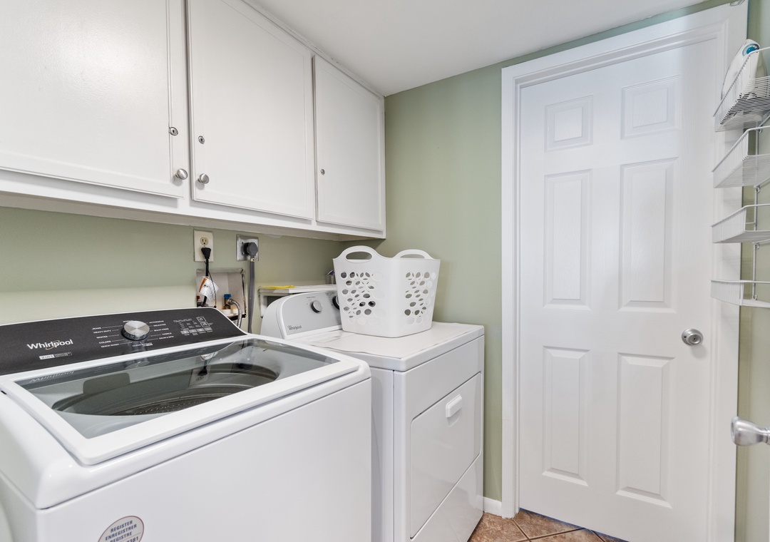 A full laundry room is just off the kitchen for your convenience.