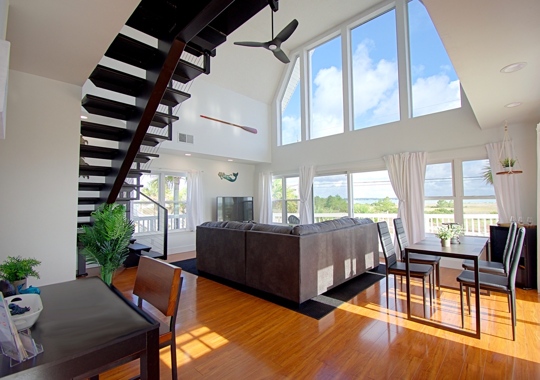 * Floor-to-Ceiling Windows with Water Views