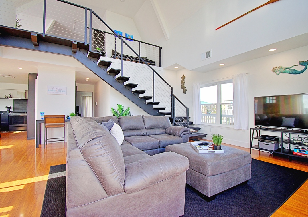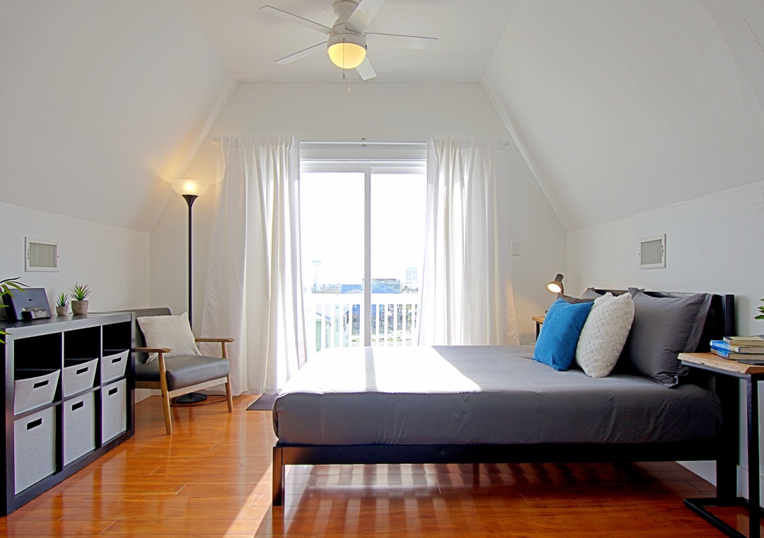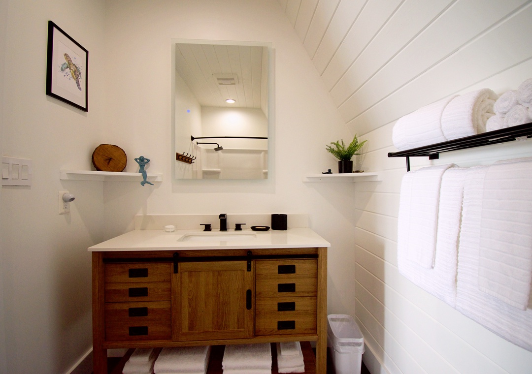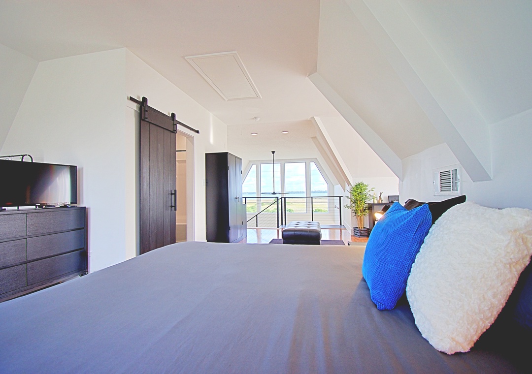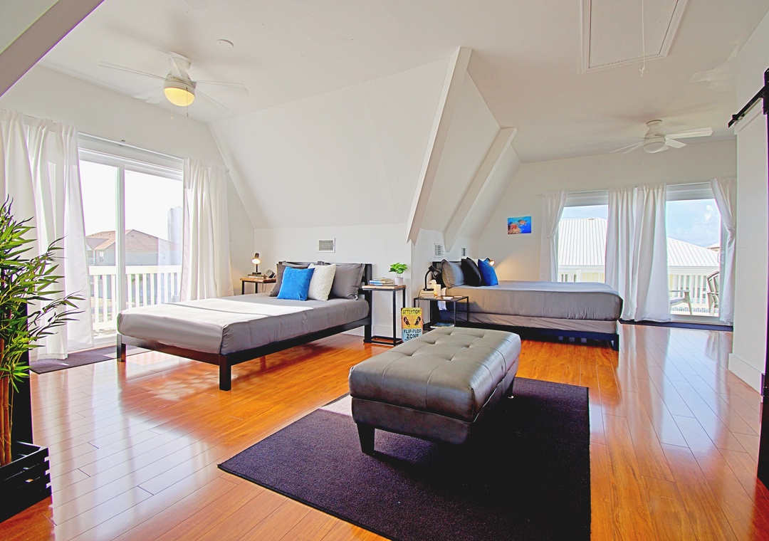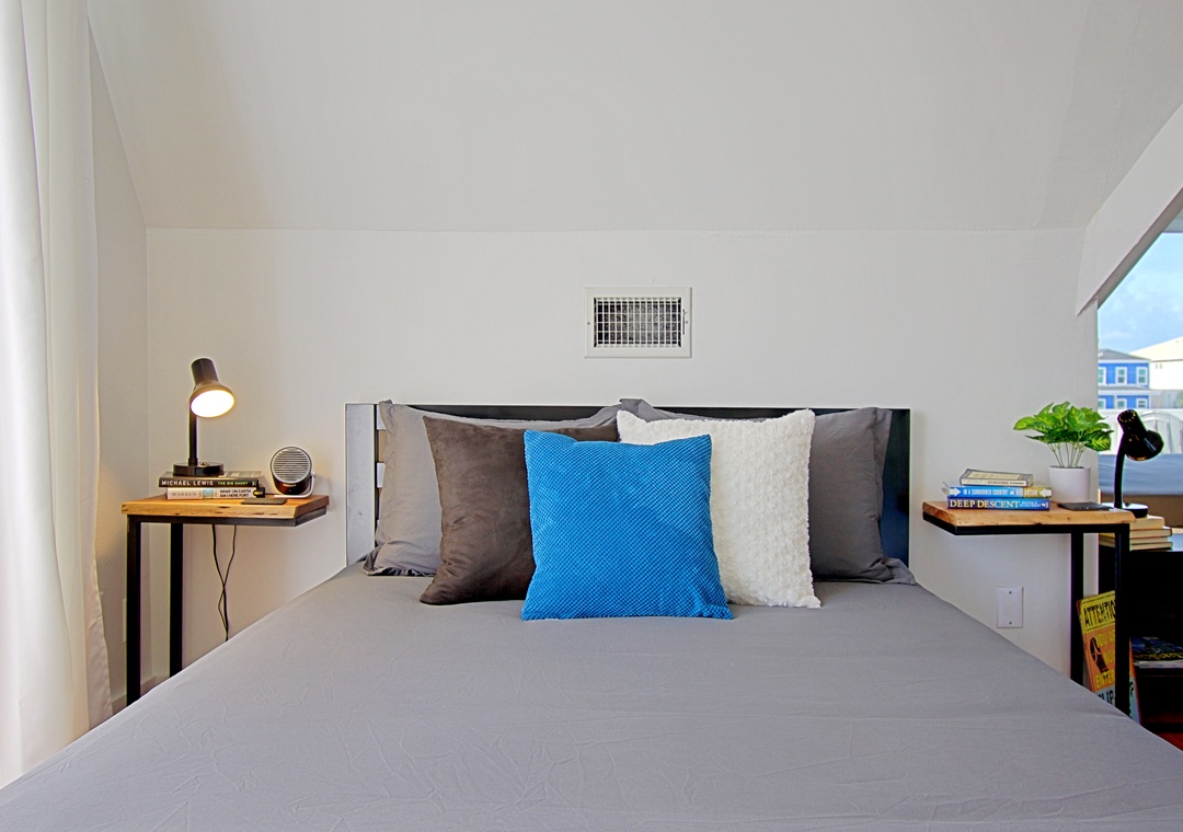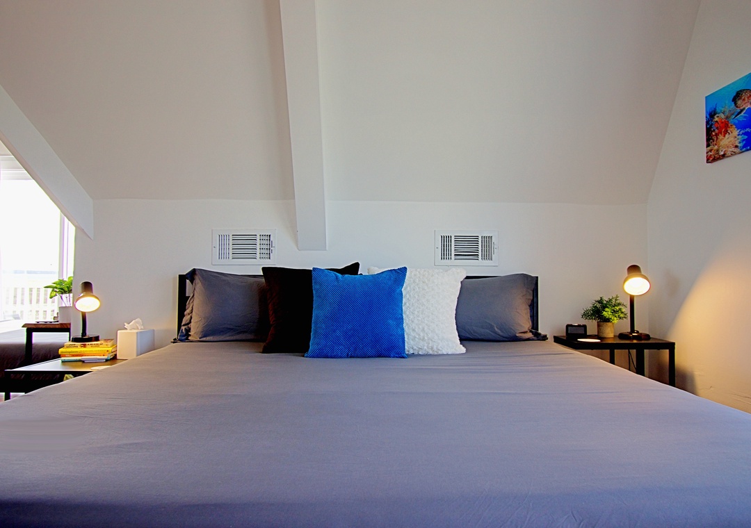 Loft (Upstairs): King Bed, Queen Bed, Twin Bed + Shared Full Bath + Deck