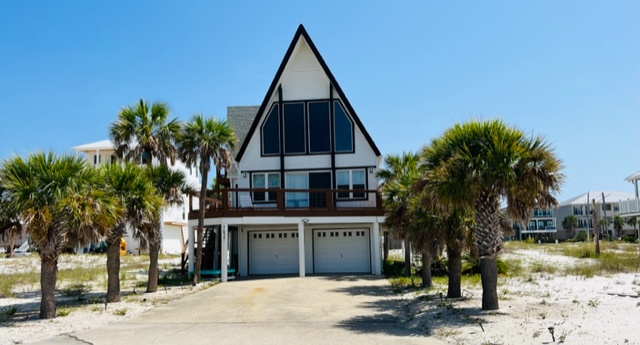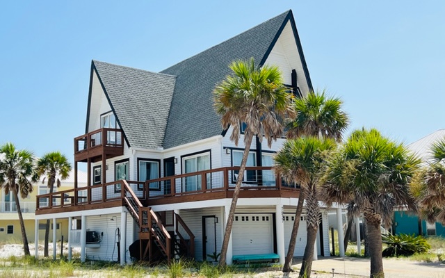 Welcome to Beach Bliss, a stunning A-frame coastal home designed for relaxation and unforgettable views. With high-end furnishings, soaring ceilings, and massive windows, you’ll enjoy beautiful natural light and water views from nearly every angle. This open-concept layout includes a cozy great room, a well-appointed kitchen with granite countertops and stainless steel appliances, and multiple outdoor decks perfect for taking in the sunset. Just a short walk from the sugar-white sands of Pensacola Beach, the home also includes an outdoor shower and propane grill for easy beachside living.