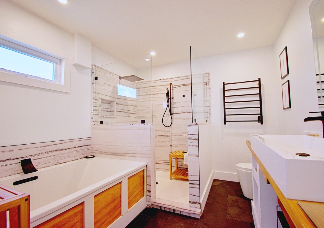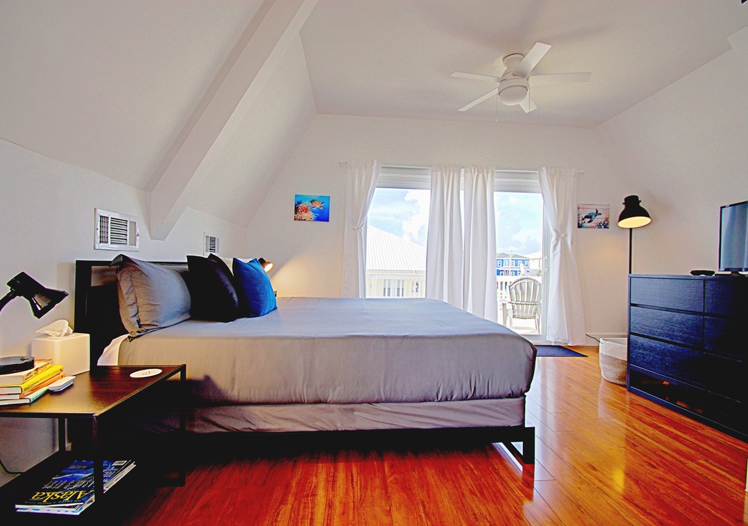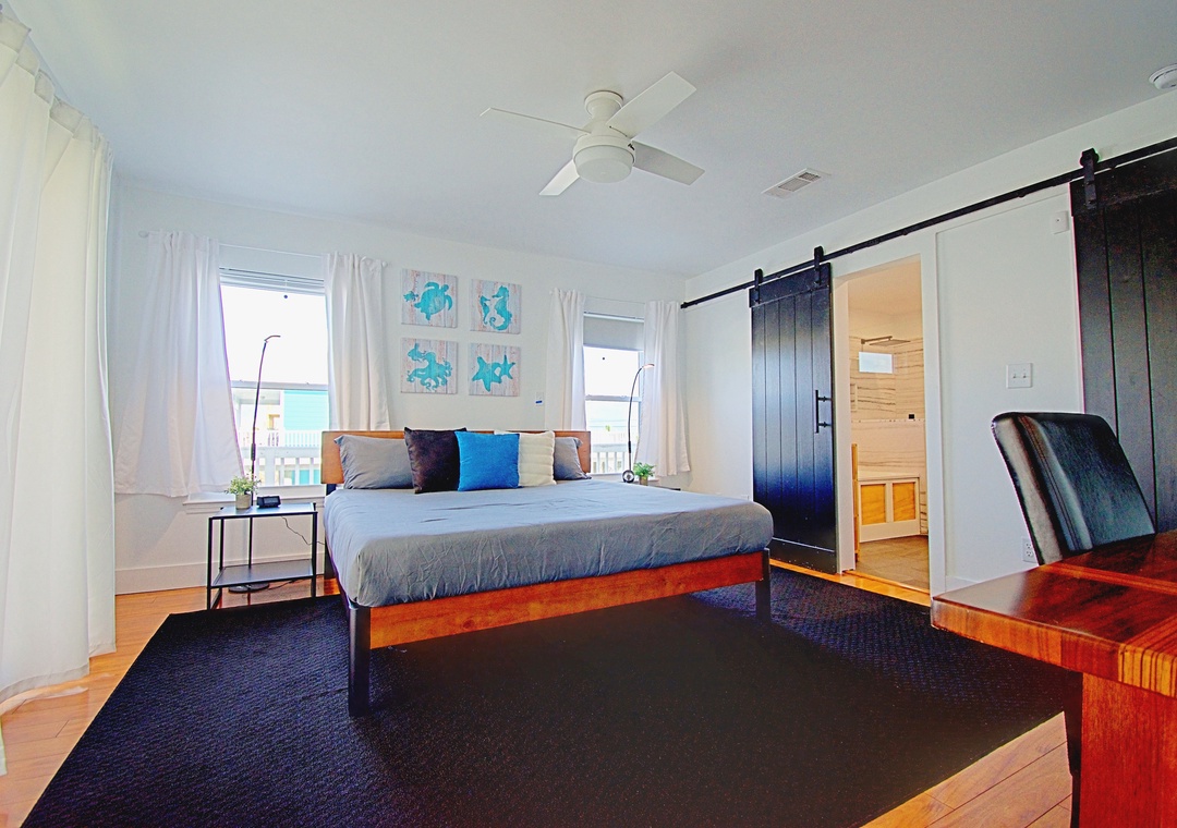 Master Bedroom (Main Level): King Bed with Ensuite + Private Deck