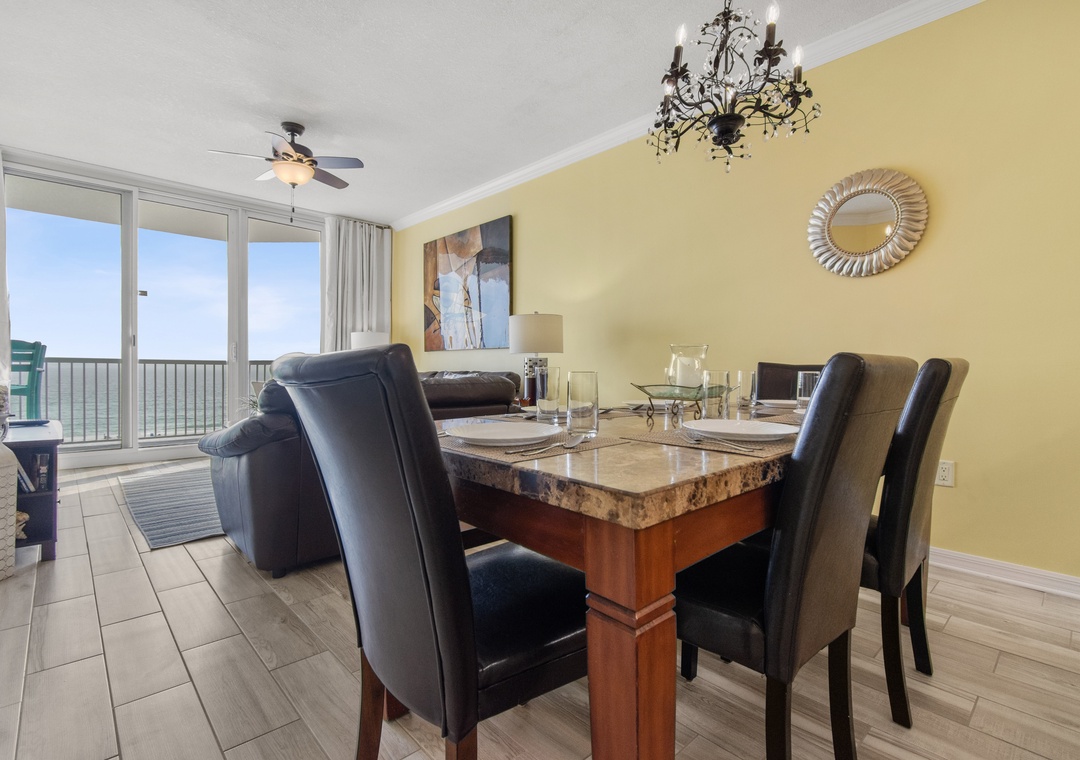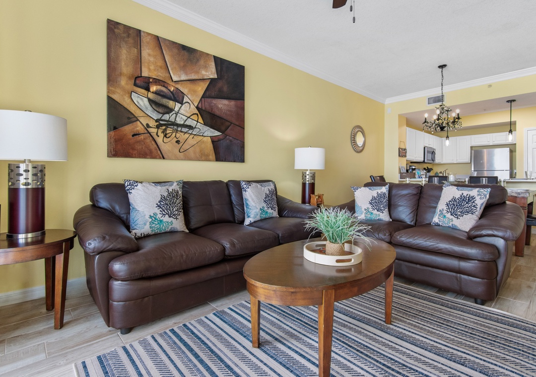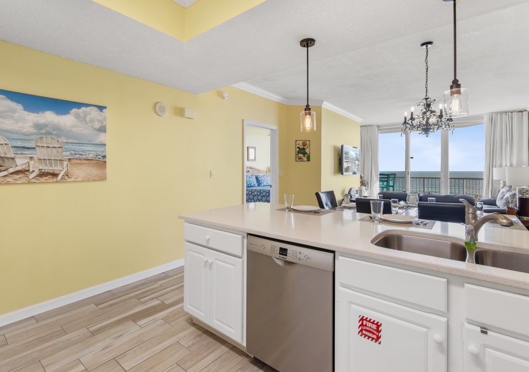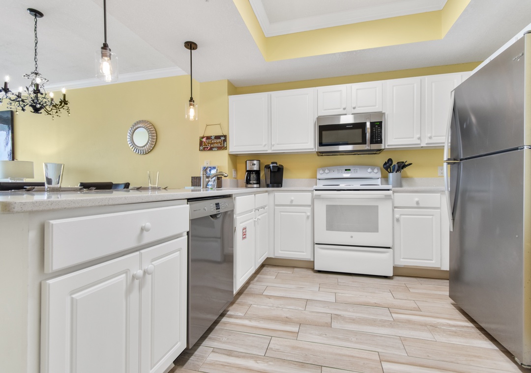 Relax in the comfortable living room, play games in the dining area or cook a meal in the well-equipped kitchen with SS appliances, all with gulf views. The pull-out sofa here sleeps 2.