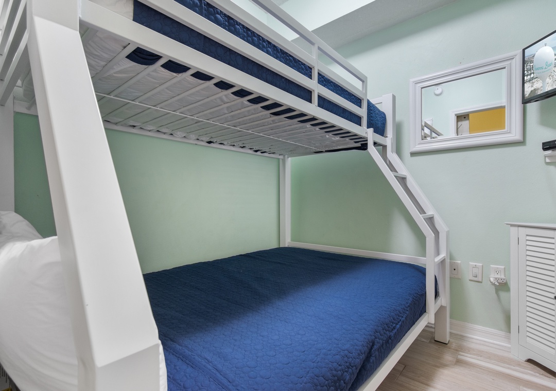The third bedroom is a bonus "bunk room" featuring a twin over a full bed and TV. It's a great get-away for the kids!