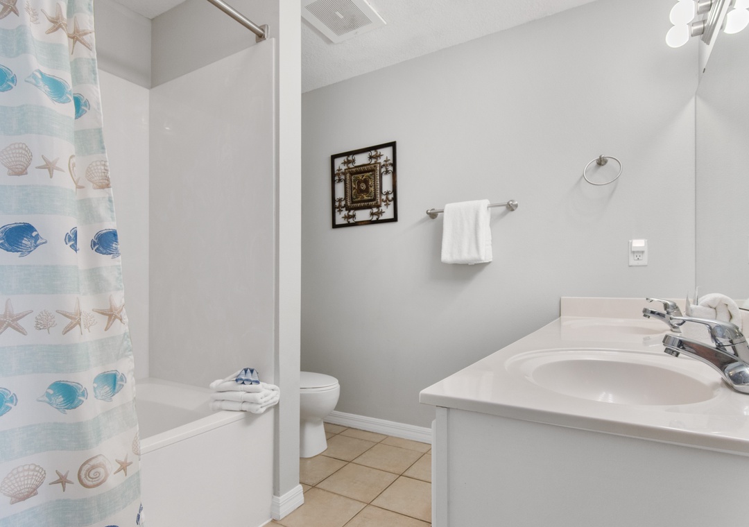 The master bath was VERY slow to drain and after a week of suntan lotion and sand, it was a VERY dirty shower with no great way to rinse the sand out due to the slow drainage. The tv in the guest room didn't work but not a huge deal for us. The third "bedroom's bunk beds were very squeaky and the room was TINY! Came with a TV with a DVD player but no DVD's were provided for the kids to watch to wind down (a luxury only allowed on vacation!)- Reviewed On: 4/11/2025
