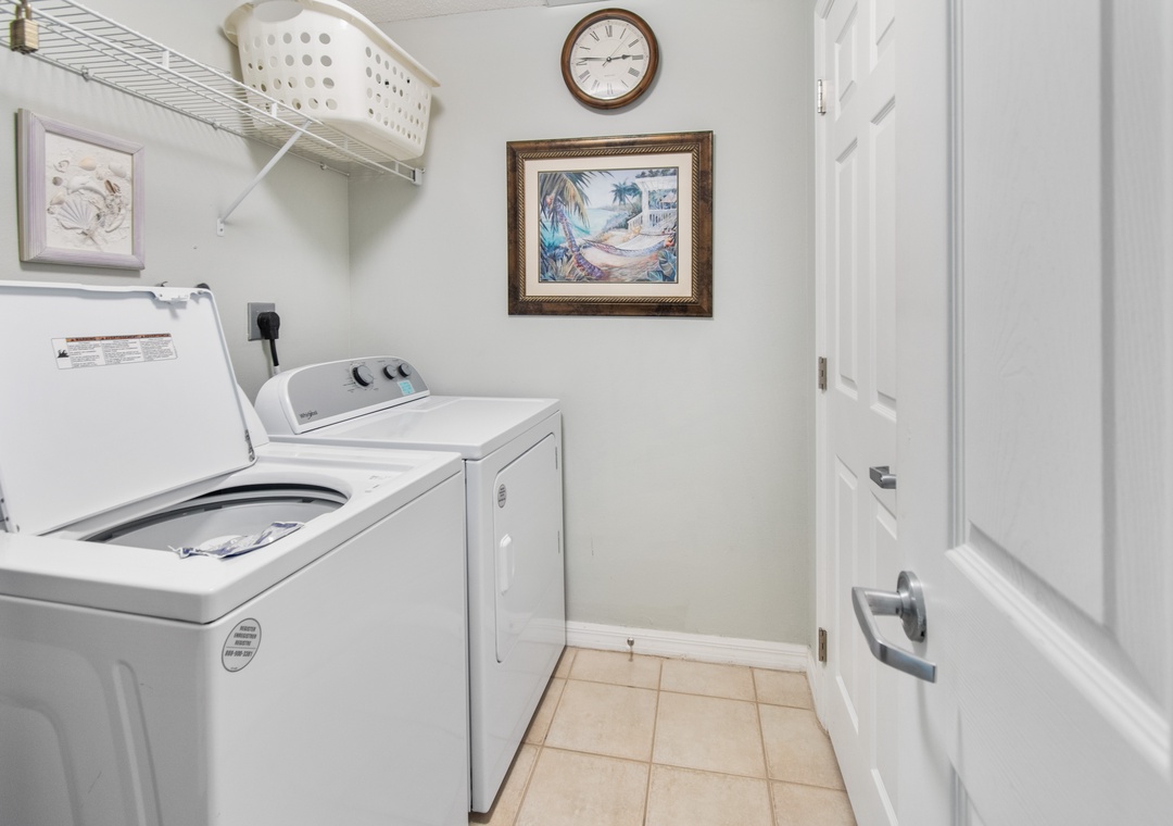 There is a laundry room with full-sized washer and dryer for your convenience.