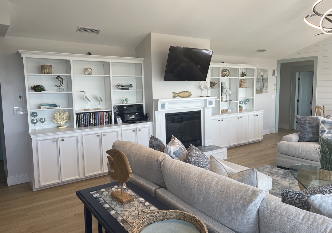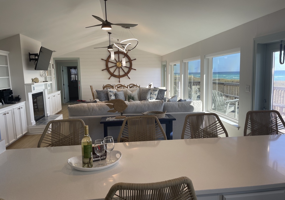 The open concept floor plan allows your group to be together playing games, making meals, reading a book, doing some "work" at one of 2 desks, lounging around watching TV or just enjoying the shenanigans of the dolphins playing in the Gulf.