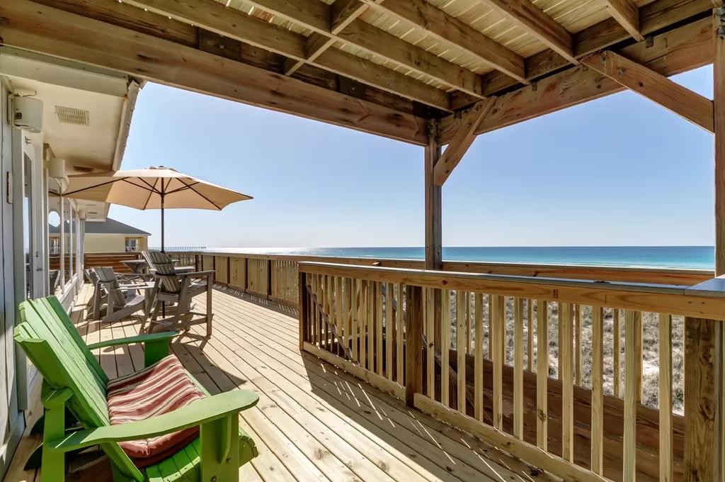 Perfect view and beach access, easy to get to, groceries close by. Photographer @kaylajordynphotography (kaylajordynphotography.com) was incredible at making our daughter’s wedding photos look like a magazine shoot! Can’t say enough about the amazing flavors produced for dinner and appetizers by chef Shaun @chefshaun6412 (chefshaunmichael.com) who catered a to die for dinner (and he did the shopping, prep work and cleaned the kitchen up before leaving!). Definitely recommend this place. Deck has ample gathering space.- Reviewed On: 3/14/2022