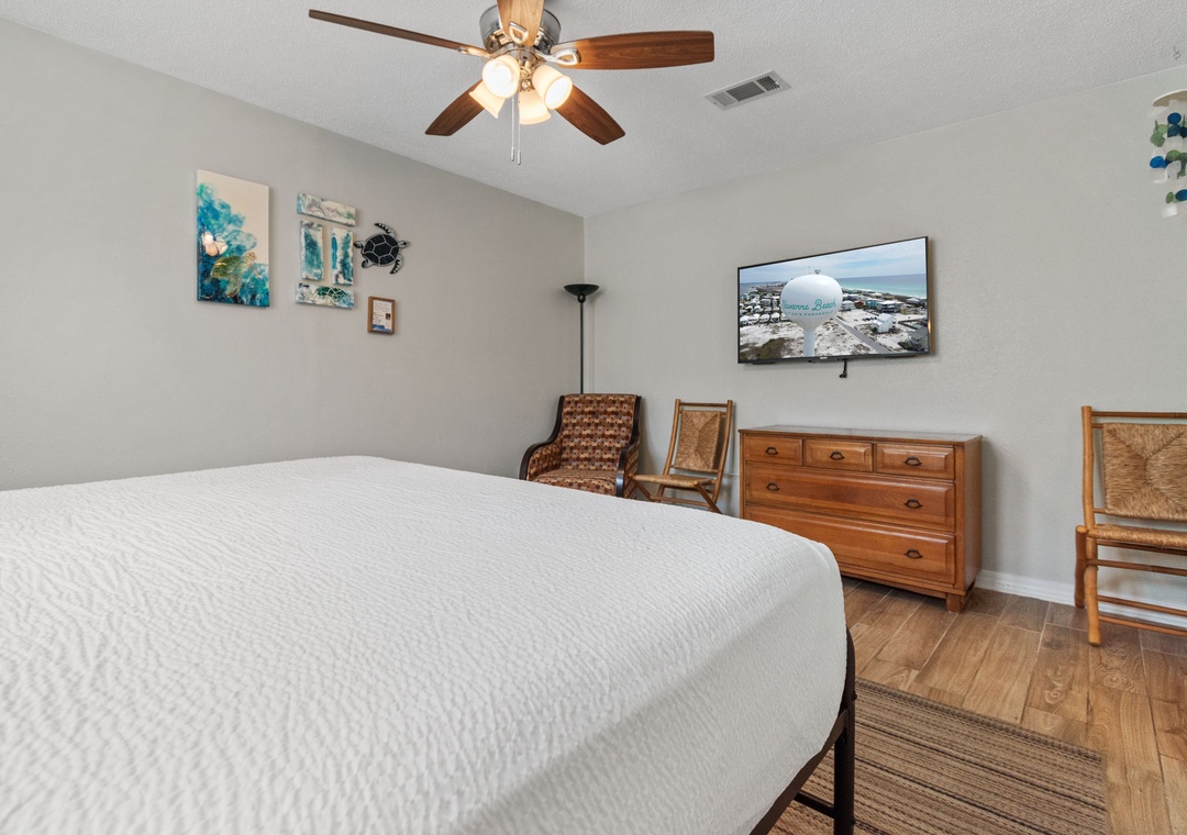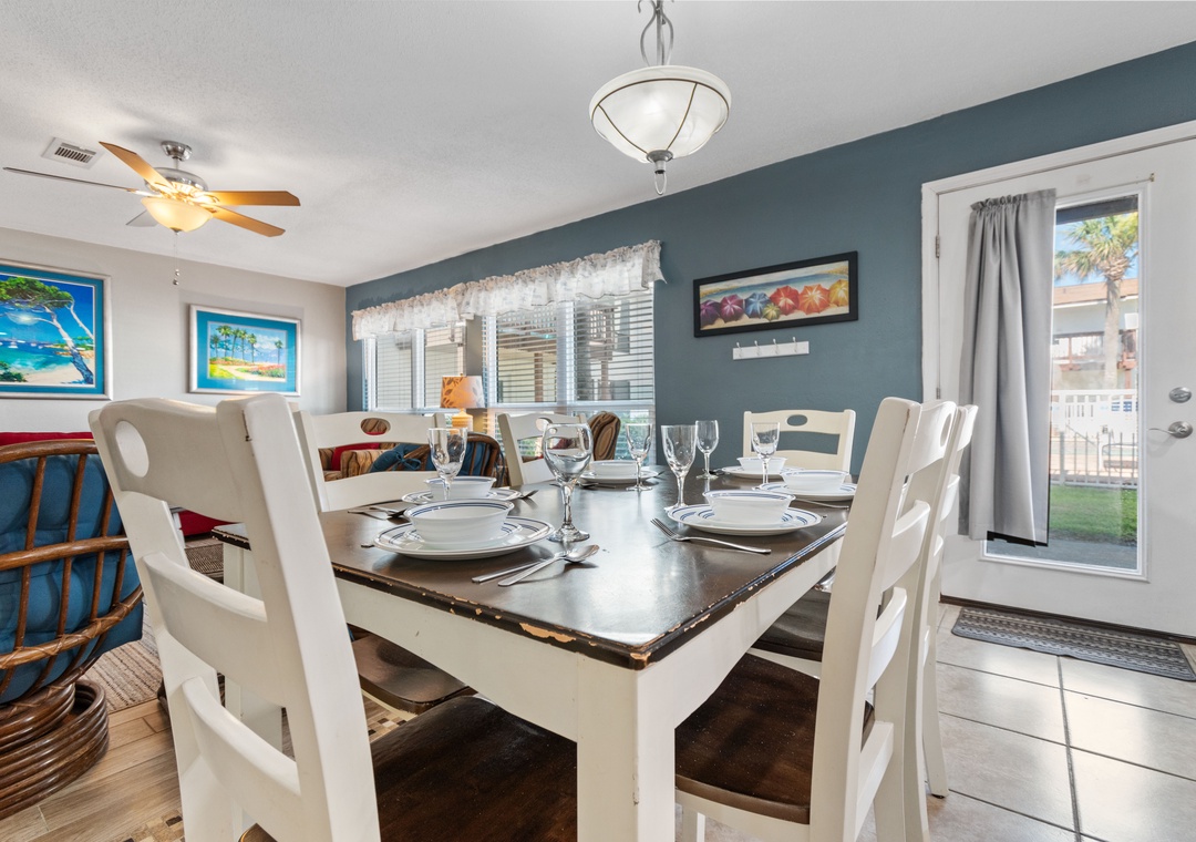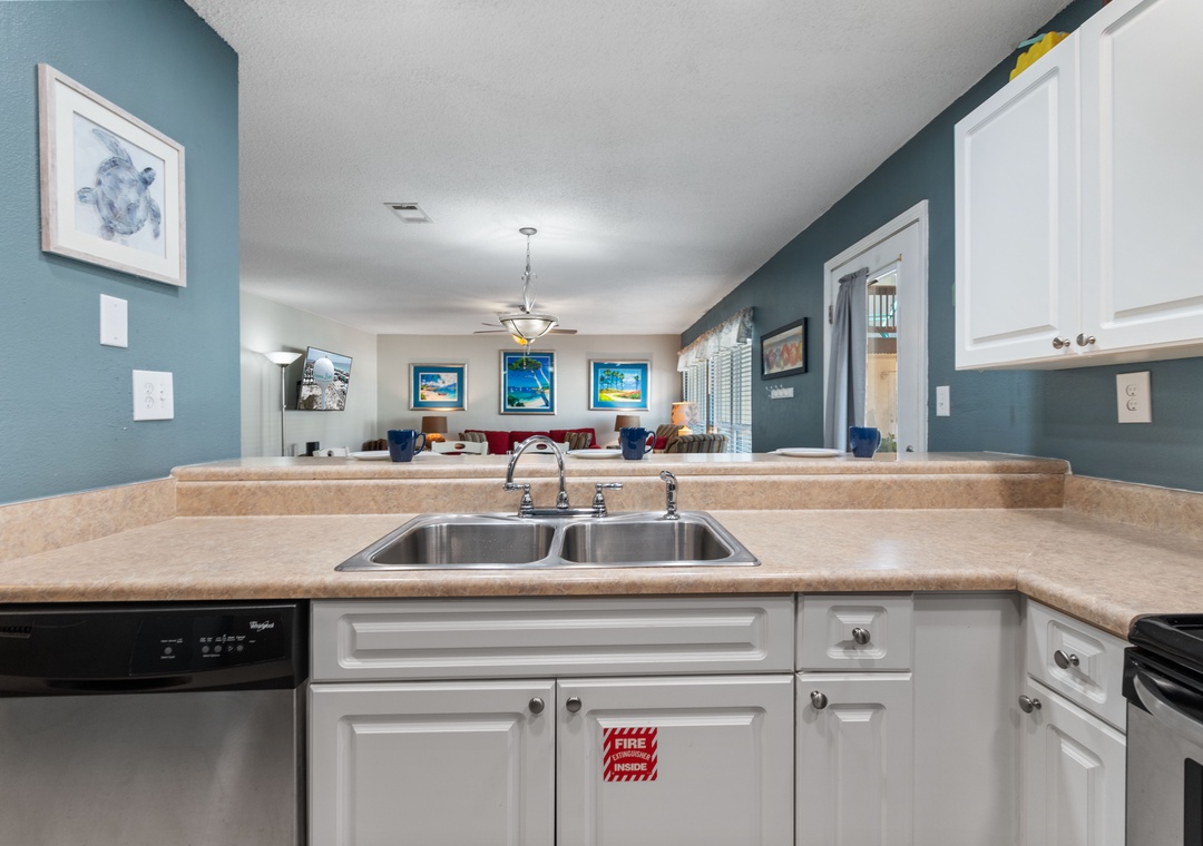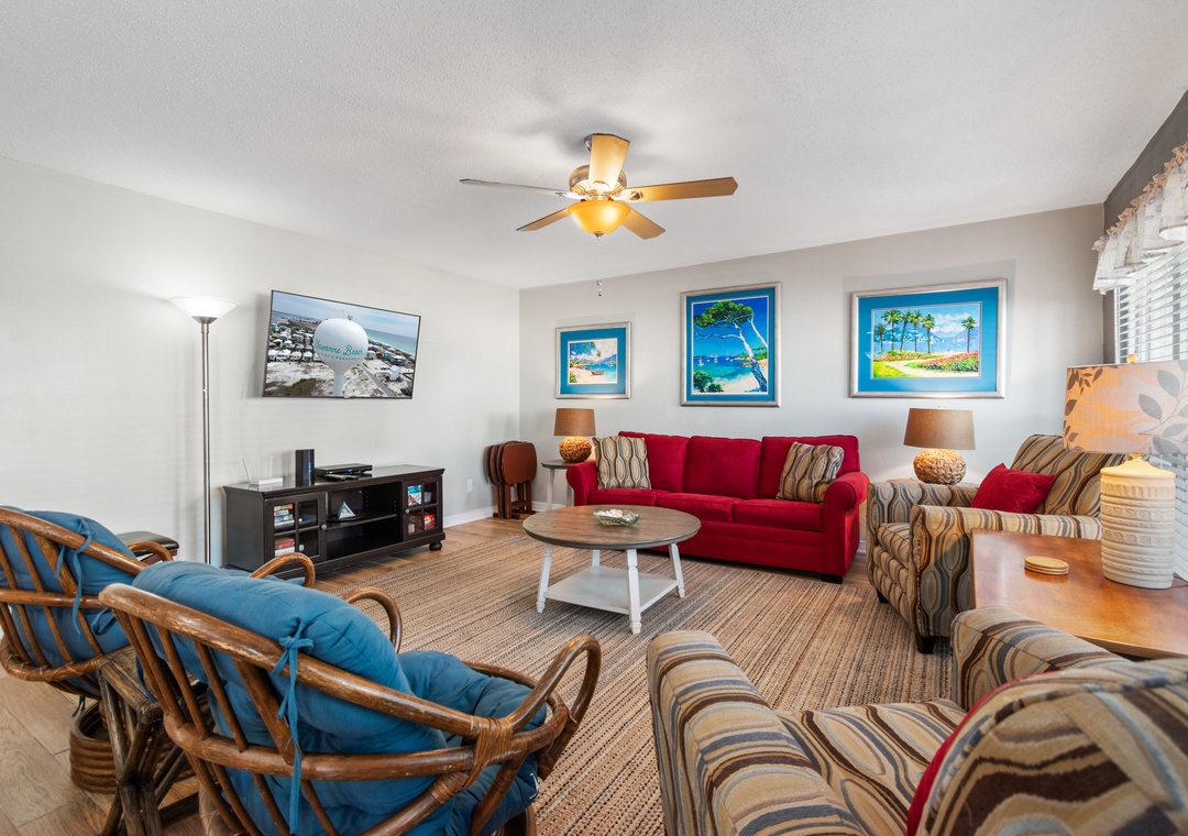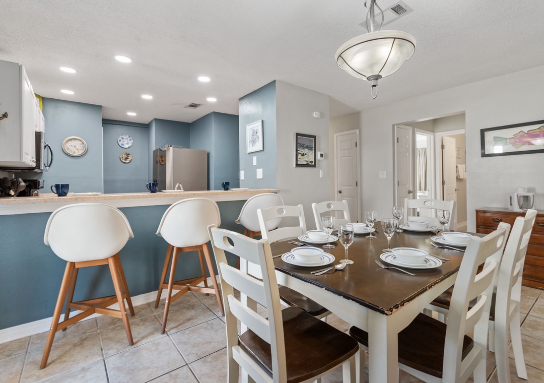 A large great room greets you as you enter BV 112. There is plenty of room for tv viewing, reading a book or just relaxing. Make a snack or a full meal in the fully equipped kitchen and dine at the breakfast bar or dining table seating 6. (also perfect for a game night!)