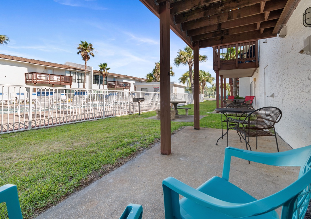 After a long beach day, take a swim in the community pool which is just outside your door. If you're feeling energetic, have a game of tennis on the private court in the complex.