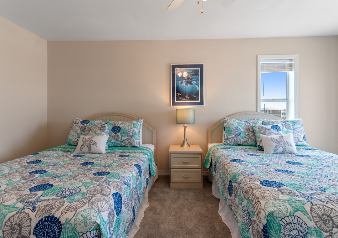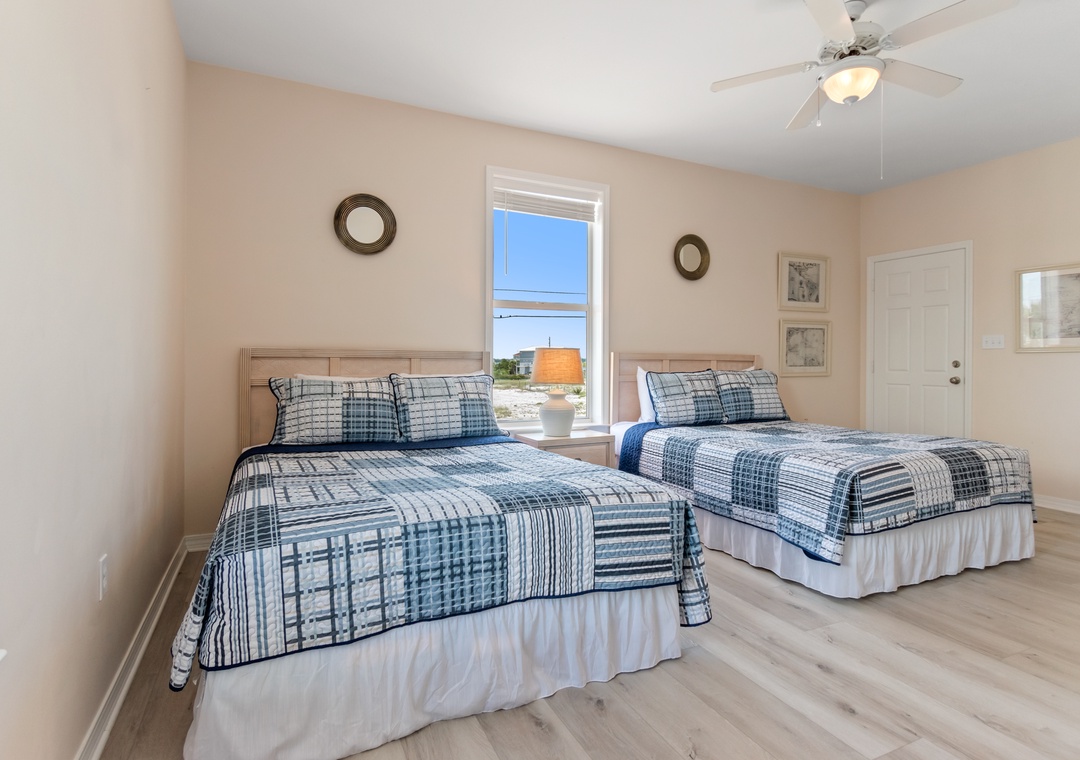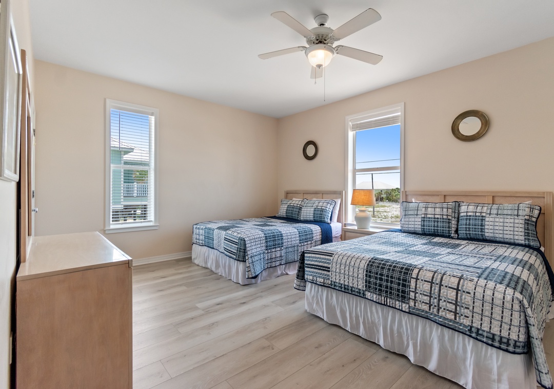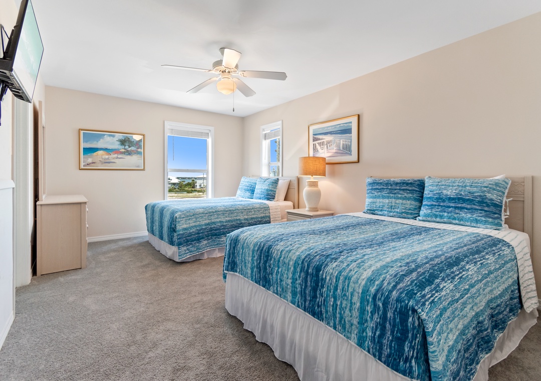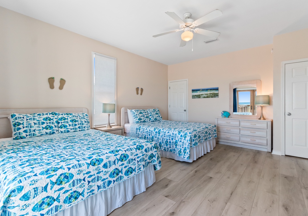 On the other side of this floor you'll find 2 more bedrooms, each with 2 queen beds and the 5th full bath, which is a jack and jill.