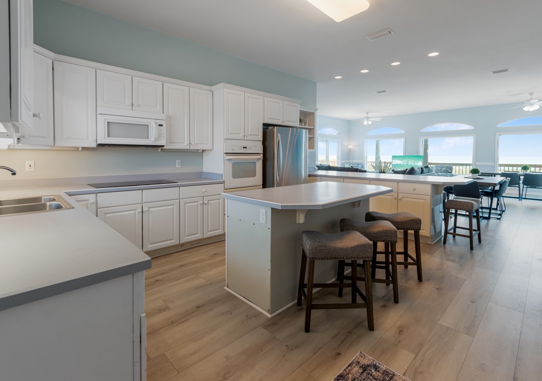 Brand new flooring, furniture and bedding, this beachy home will comfortably sleep your group of 22!