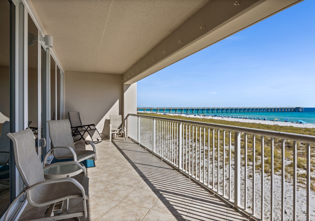 The 35' balcony runs the entire length of the unit, affording plenty of room for gazing at the Gulf or for sunbathing.