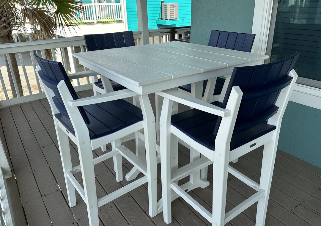 Watch the pelicans soar by from your large front deck while sipping your morning coffee or bloody mary. View the Gulf and feel the sea breeze when having your evening 's a great spot to congregate! New furniture for another dining or snacking option.