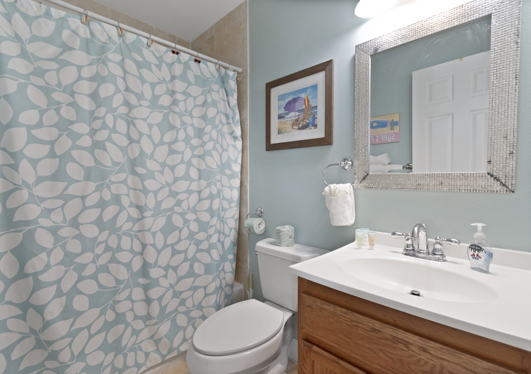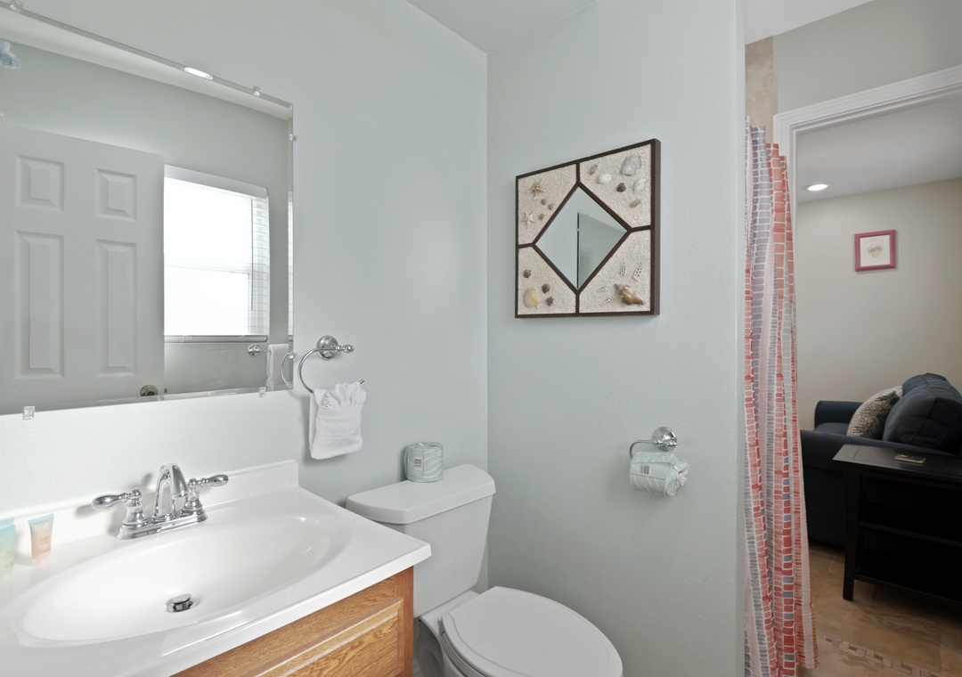 A separate, fully equipped guest suite is on the ground floor. You'll find a seating area, flat screen TV, full kitchen, full bath with shower, a queen bedroom and queen sleeper sofa here. A "hideaway" for extended family or friends that want a little more privacy!