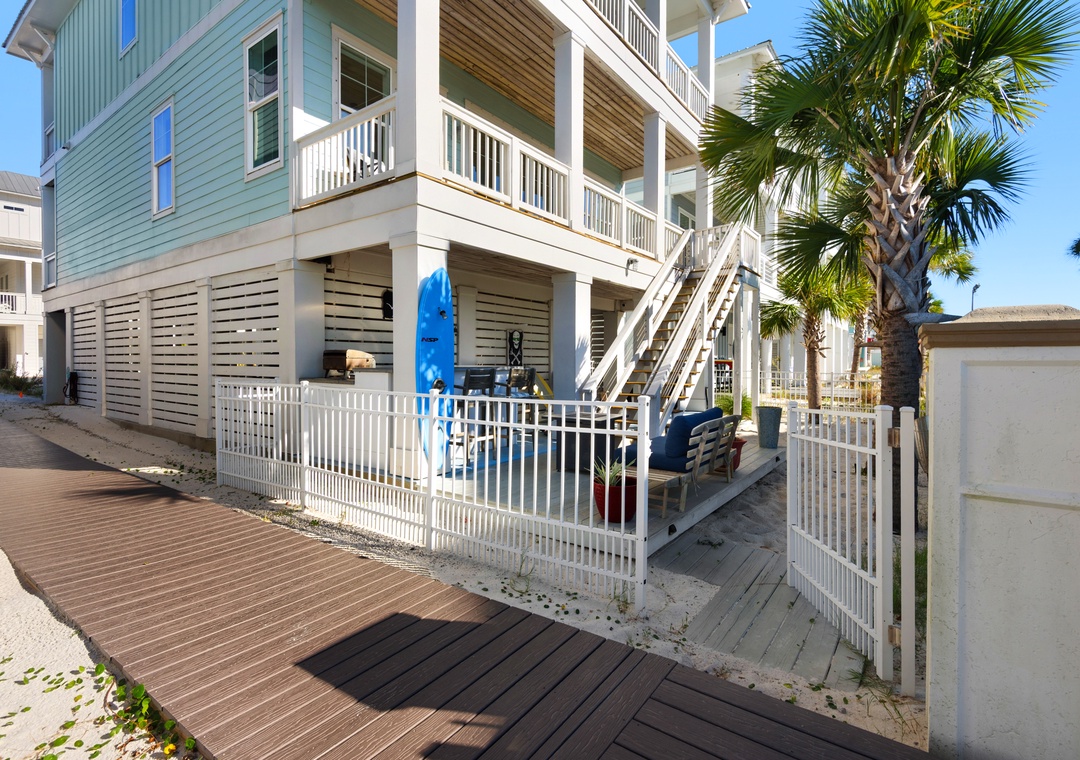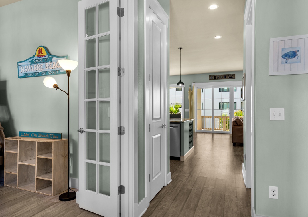 Escape to this private, Sound-side haven tucked inside a serene, gated community, perfect for families and groups seeking a blend of relaxation and adventure. With resort-style perks and thoughtful touches throughout, your beach getaway just found its perfect setting. This neighborhood is located on the west end of Navarre Beach, which is much quieter and family-friendly. They also have direct Sound Beach access right out of your back door, and are right off a low-traffic road, which is great for biking.