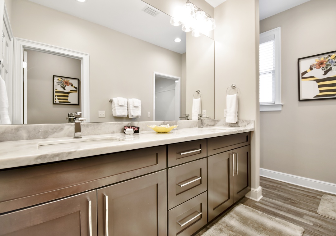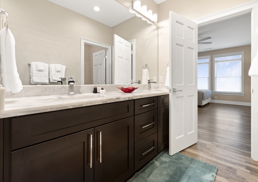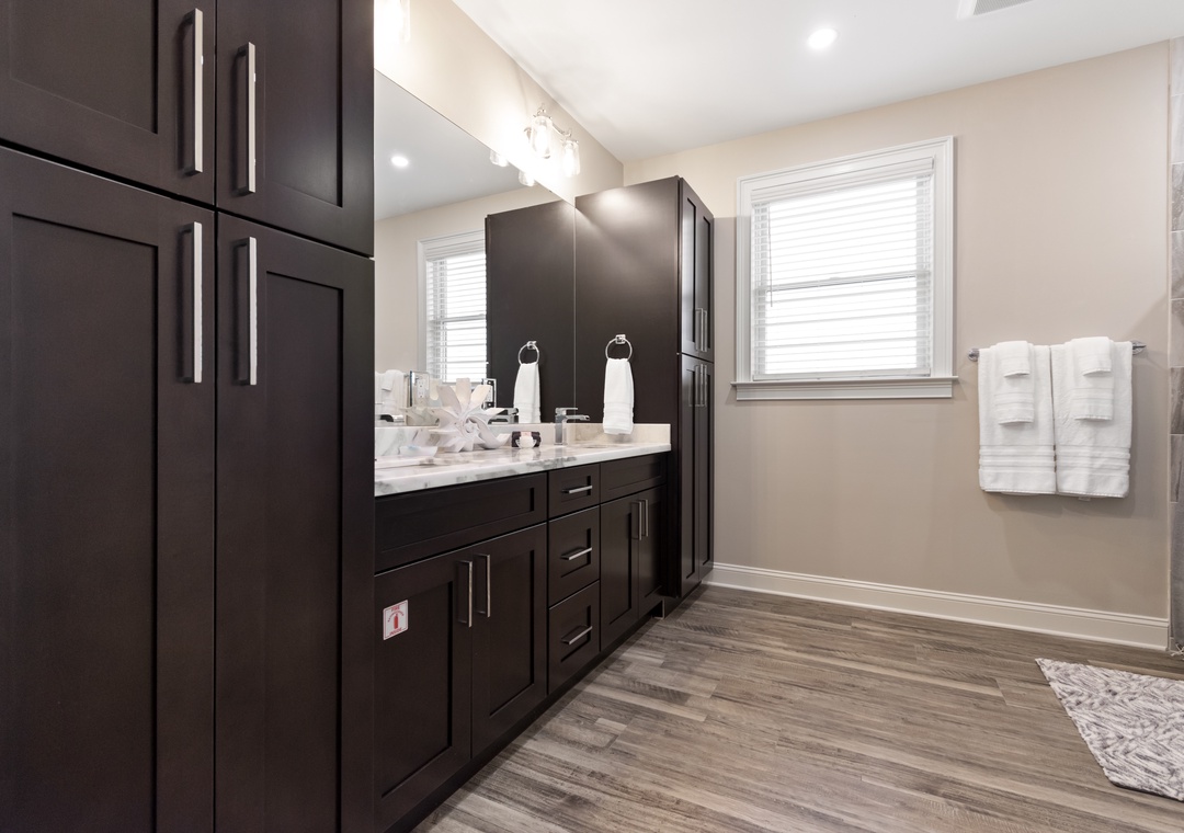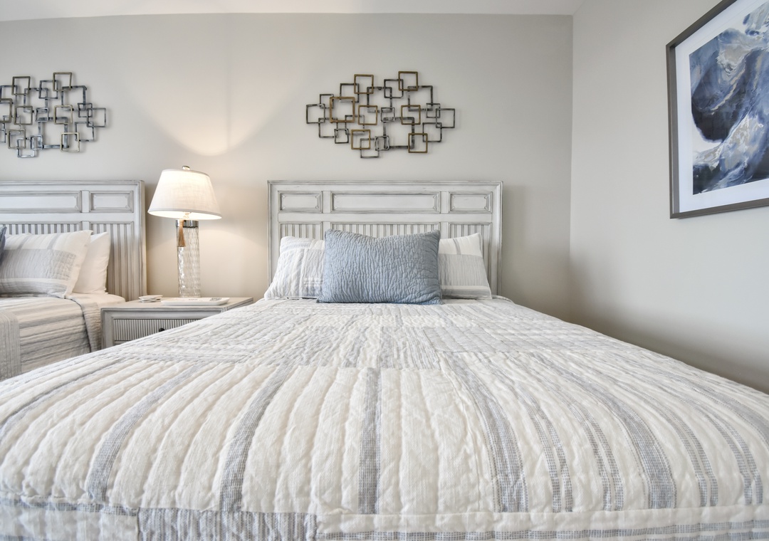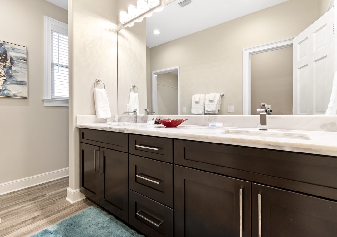 Upstairs, two additional primary bedrooms with ensuite bathrooms and 2 queen-sized beds in each offer privacy and comfort. A trundle bed is in the 6th bedroom along with a half bath, and 2 sets of twin built in bunks are in the remaining 7th bedroom. Another full bathroom completes this floor.