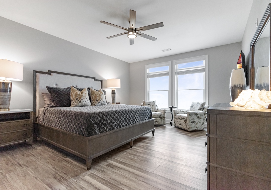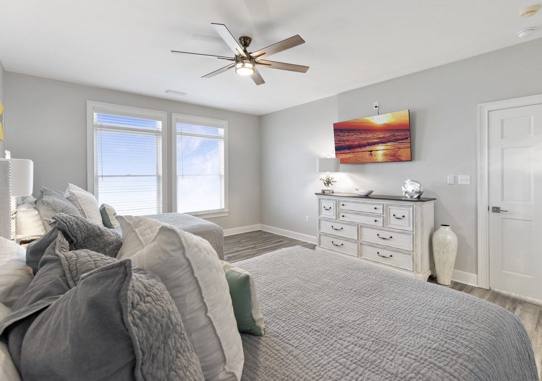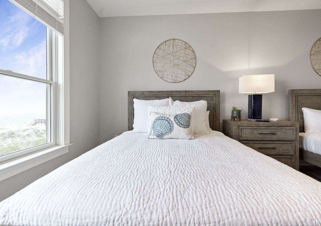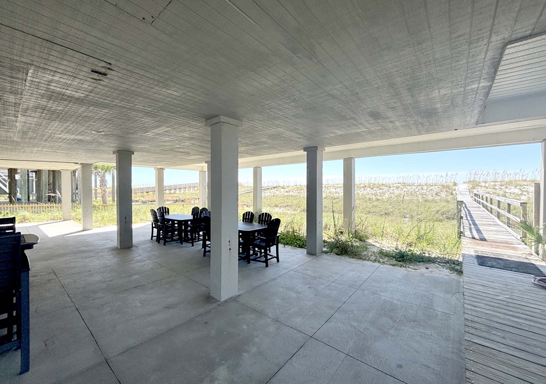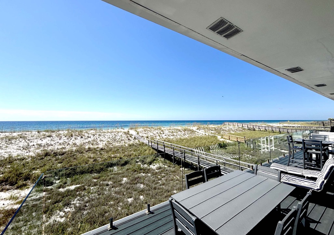 This property fit our needs perfectly. It had everything we needed for cooking. It also had lots of beach chairs, umbrellas and even a beach canopy. The balcony overlooks the beach offering both sun and shade. The boardwalk made it easy to walk to the beach. A king room and 2 queen room are on the main floor. We absolutely enjoyed our stay!- Reviewed On: 9/1/2025