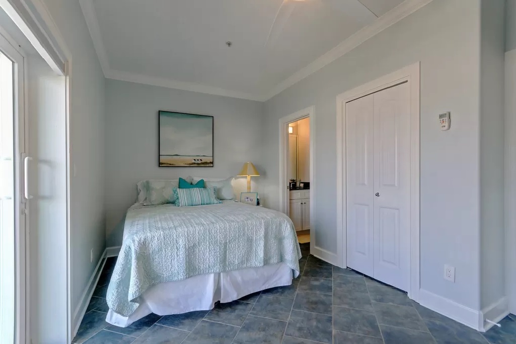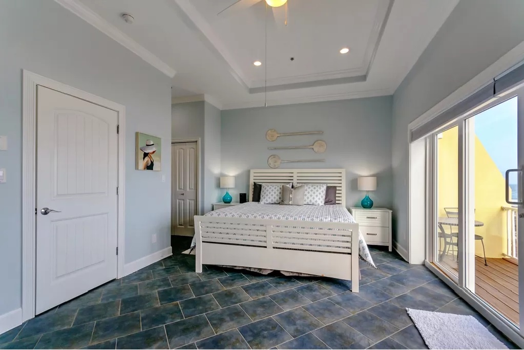 Just down the hall are 2 additional queen-sized bedrooms with balconies and a full shared bath.