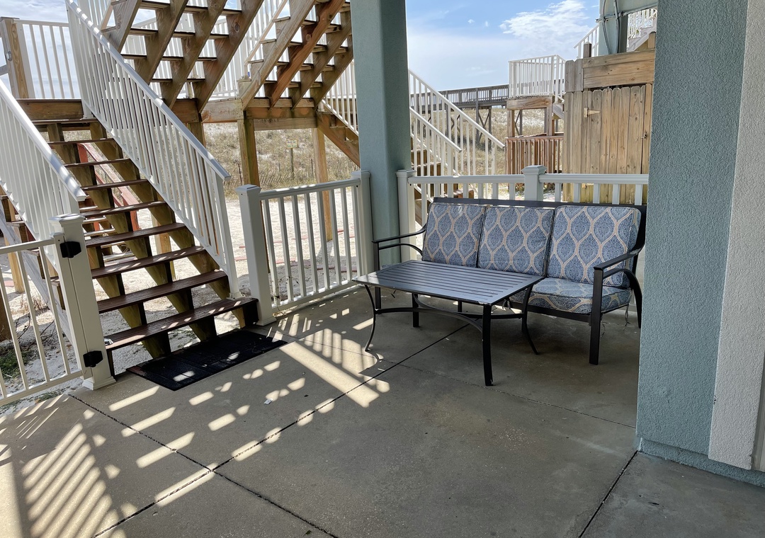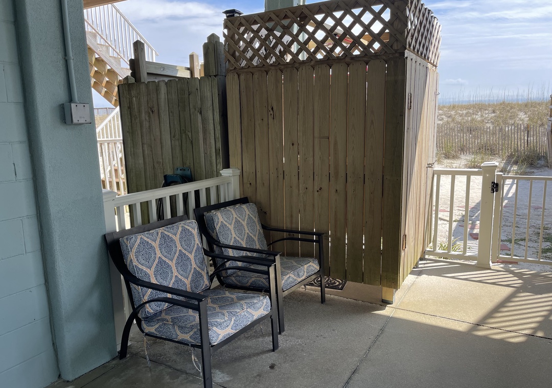 Rinse off under the outdoor shower after a day of relaxing on the beach and store your beach gear in the private locked closet. Grill your catch on the gas grill and dine in the under the stars.
