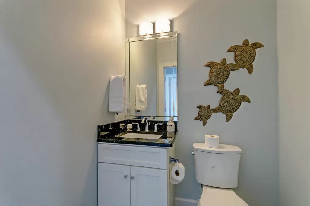 A convenient half bath is on the main floor along with a queen bedroom that has extra sleeping for 2 on a pull out trundle couch. There is also a private full bathroom with tub/shower combination.