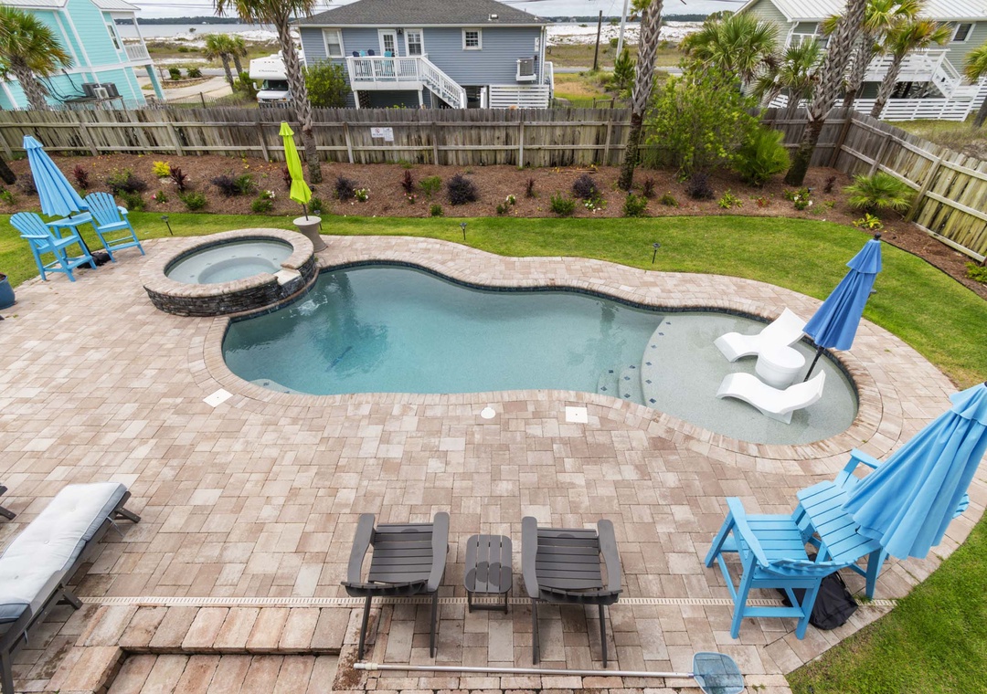 As if this home isn't enough to provide you with a great vacation, you'll be amazed when you walk out the back door to your own private tropical oasis! A large in ground pool and hot tub is yours to enjoy. The large paver patio has plenty of furniture to relax on as well as a large gas grill and dining seating. The convenient private outdoor shower is hot/cold.