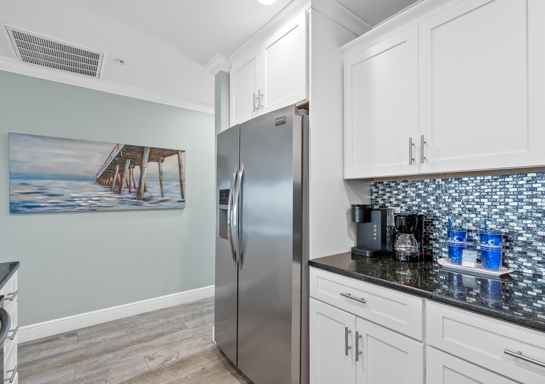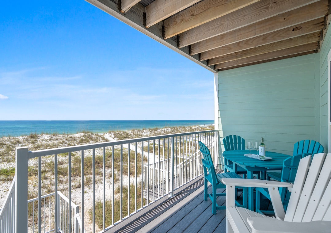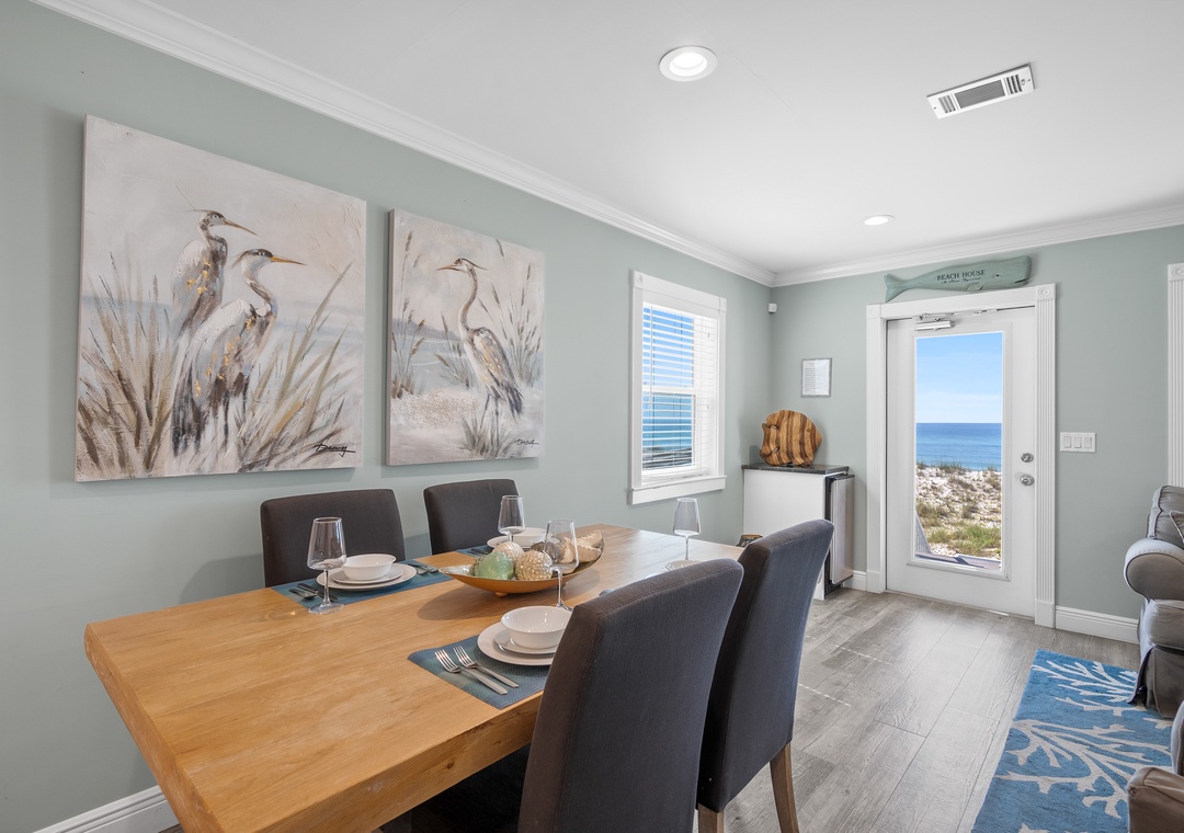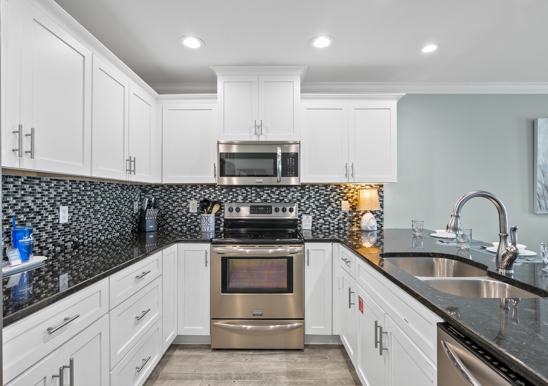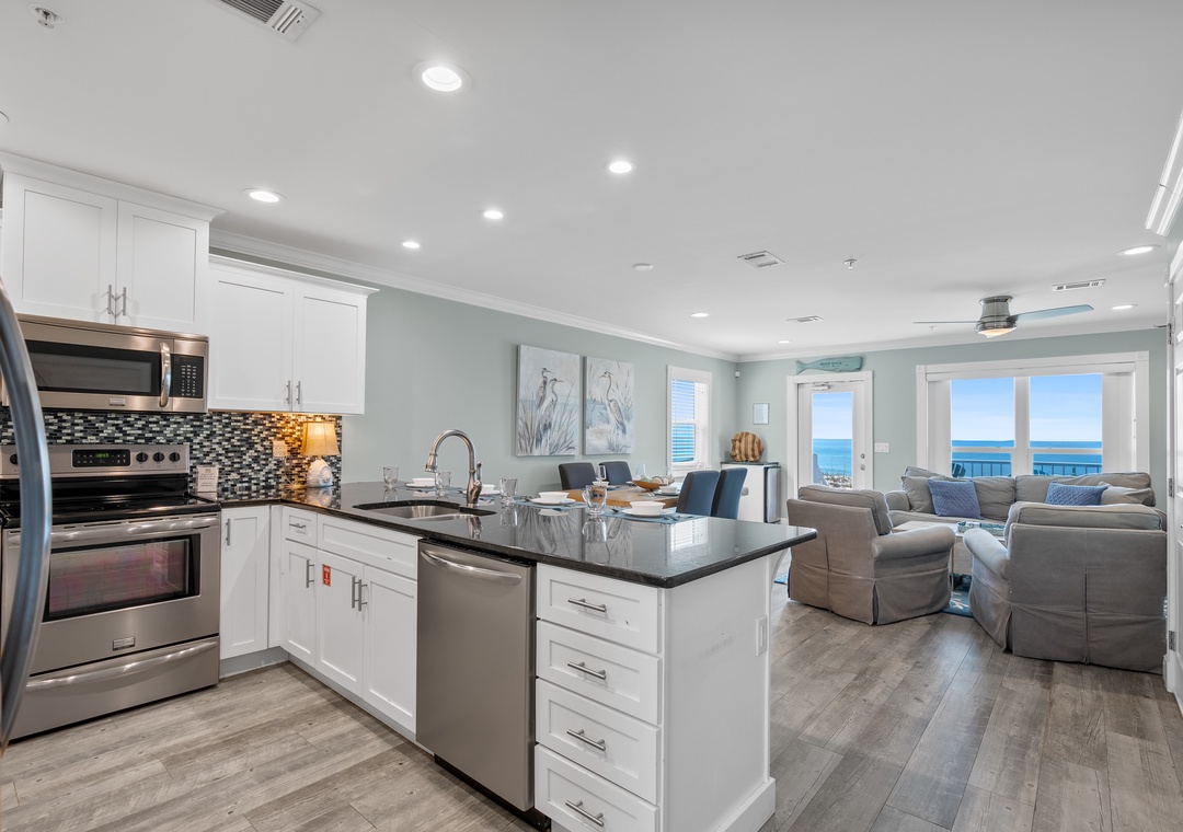 Fully Equipped Kitchen: Featuring stainless steel appliances, granite countertops, and all the essentials to prepare your feasts. Dine indoors or take your meal out to the balcony, where you can enjoy the salty breeze and sounds of the Gulf.