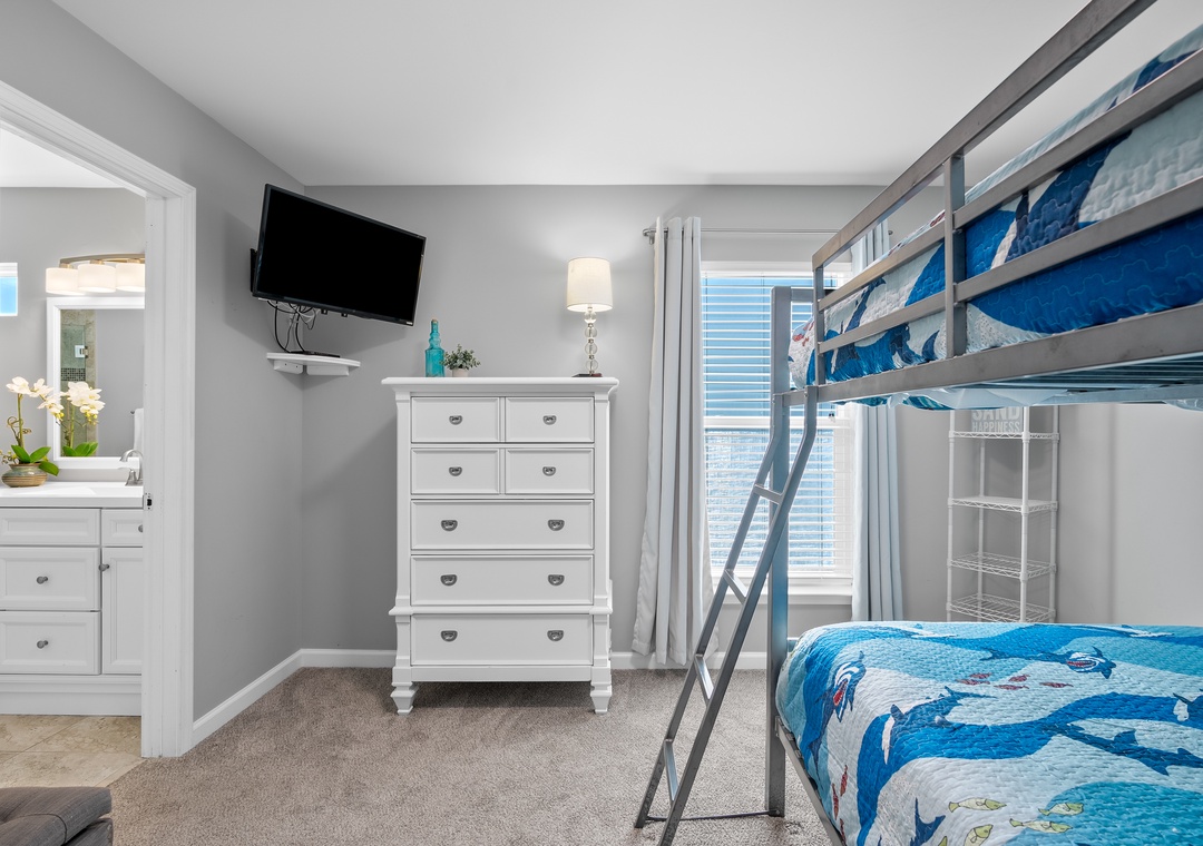 Bunk Room: Full-over-full bunk beds, perfect for kids or extra guests, plus a Smart TV for streaming.