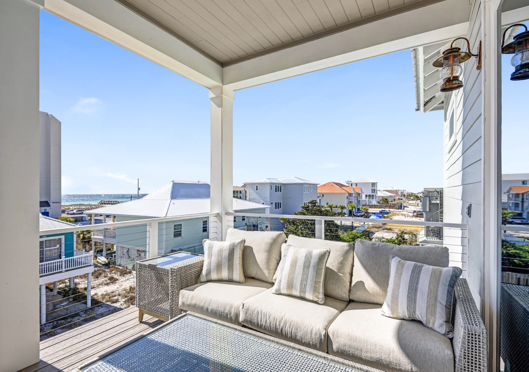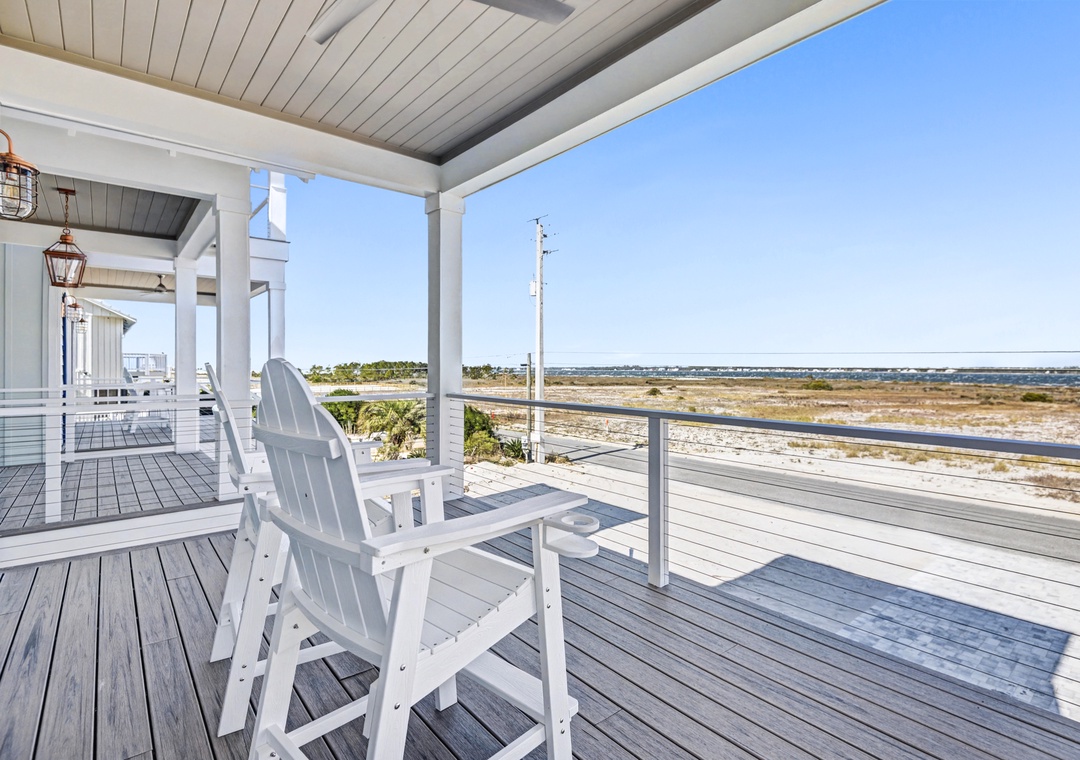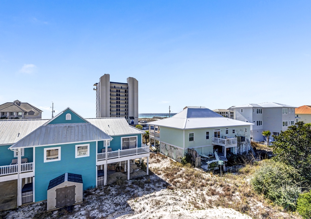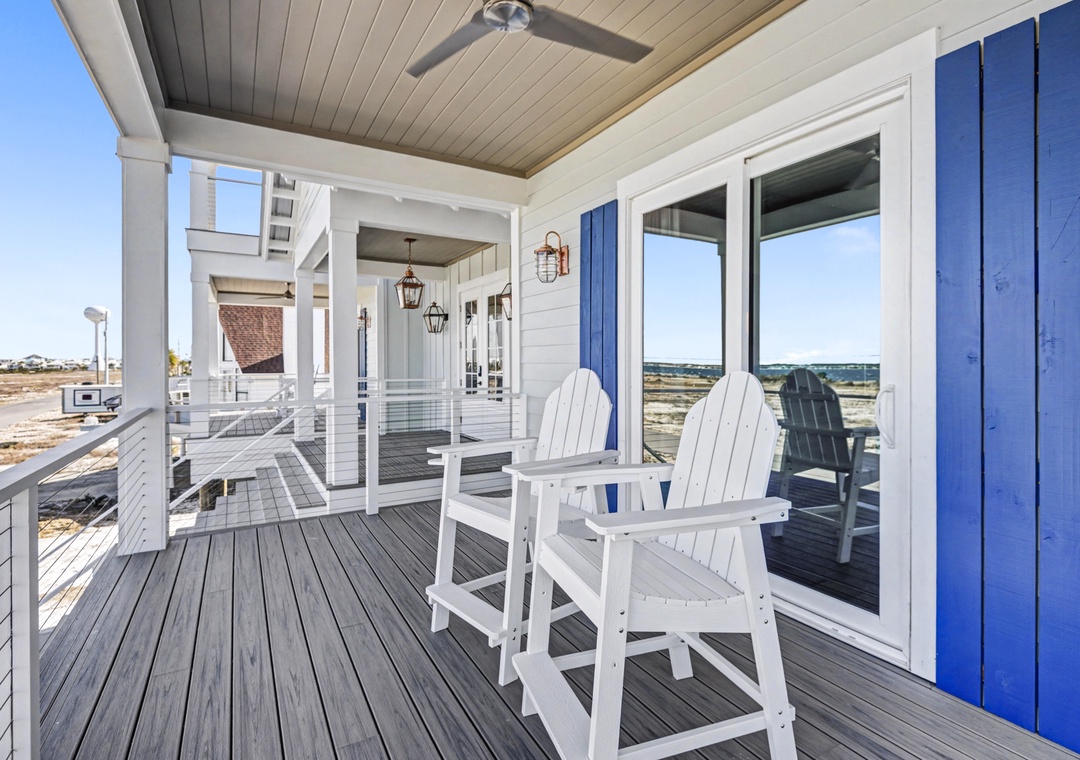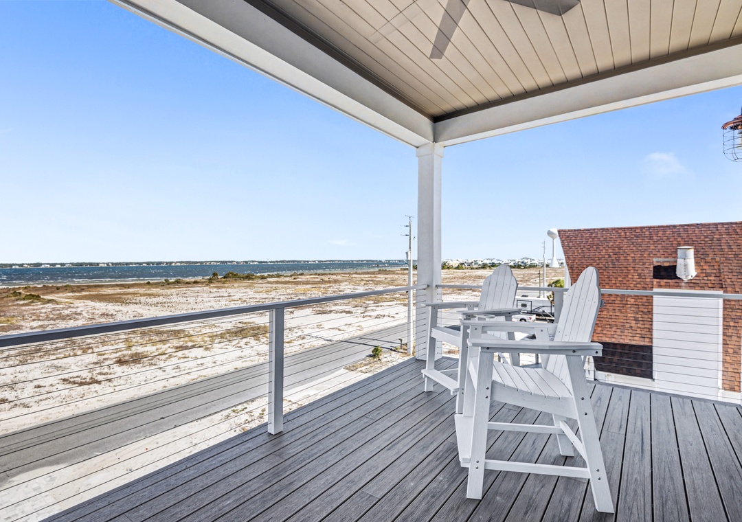 Take the elevator to any floor with ease, then step out to enjoy Gulf and dune views. Don't be scared to climb to the top to see the home’s standout feature—its spiral staircase leading to a prime rooftop viewing platform, offering panoramic scenery over the surrounding homes.