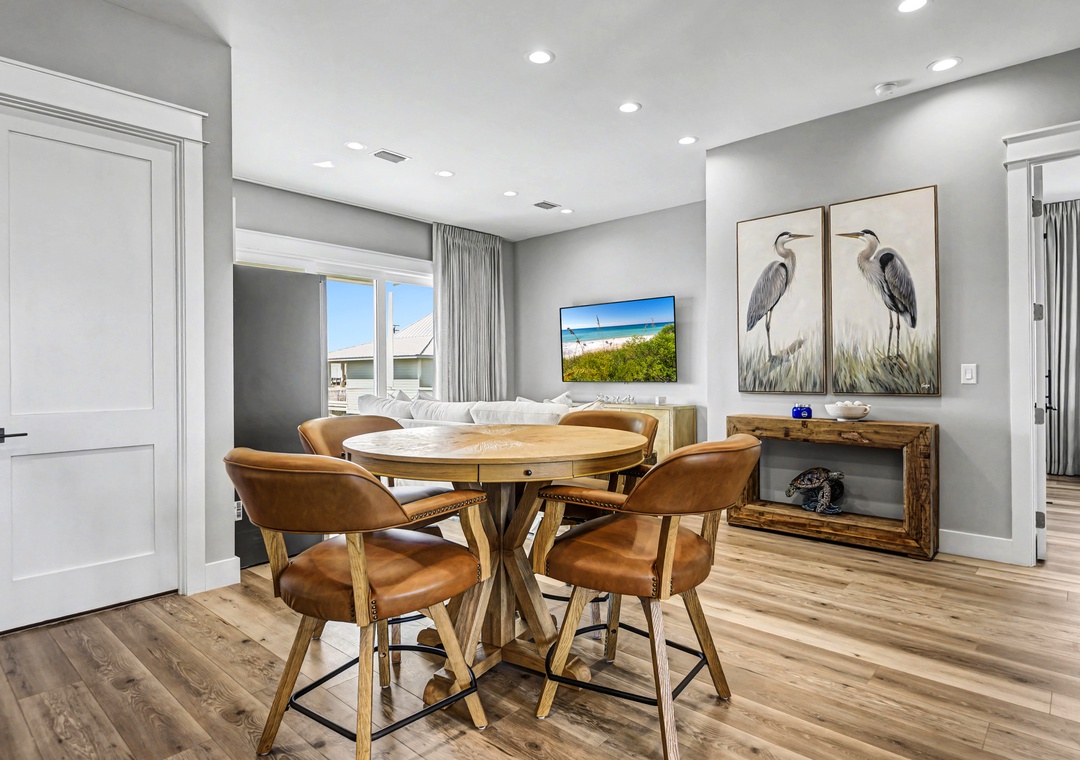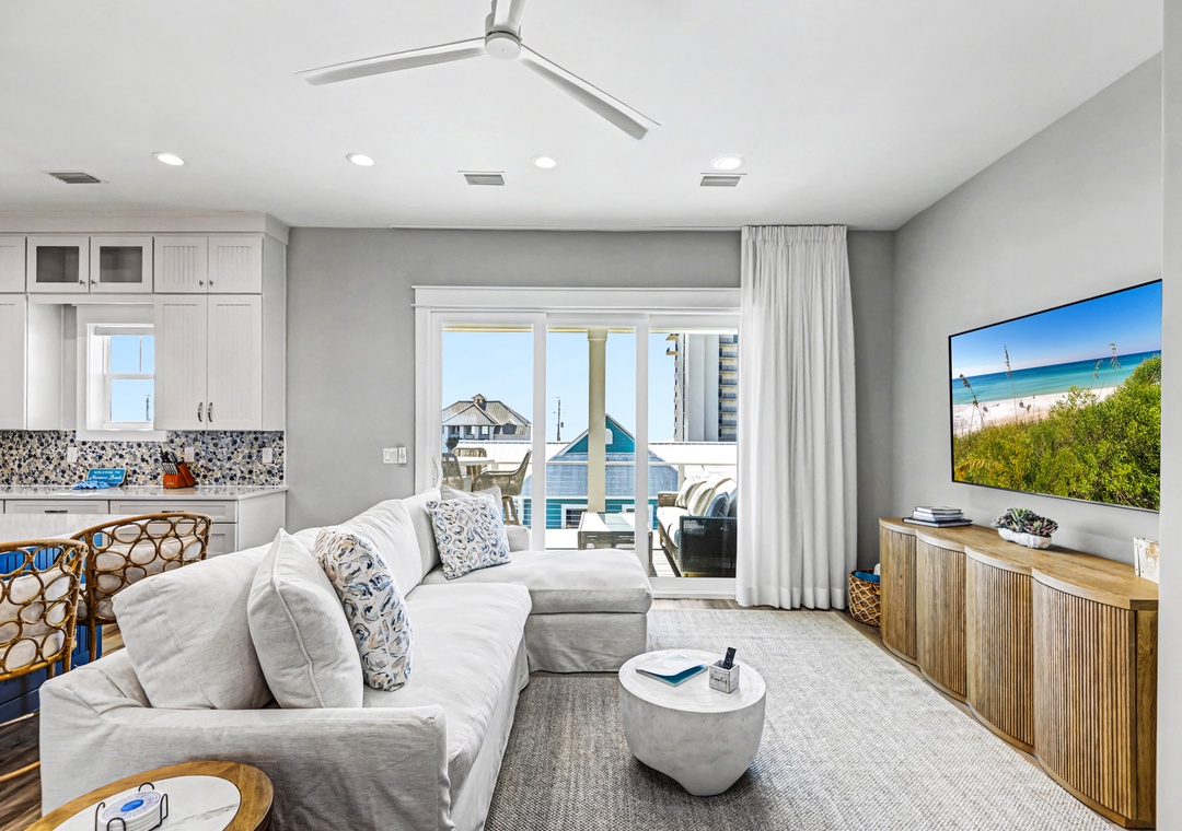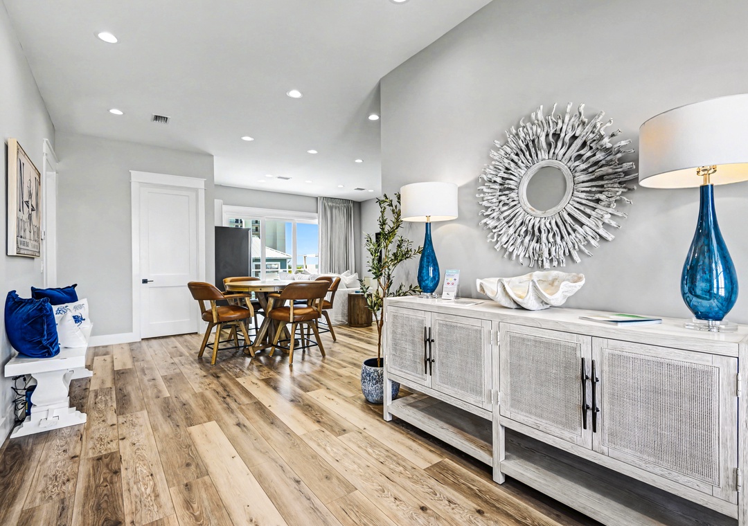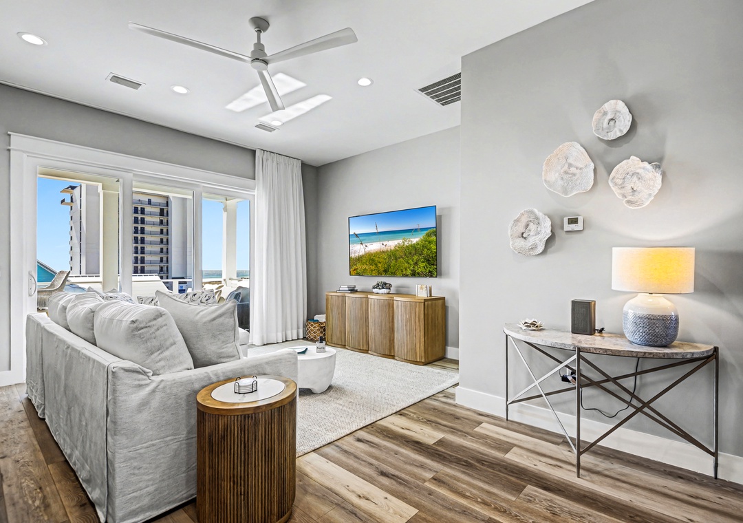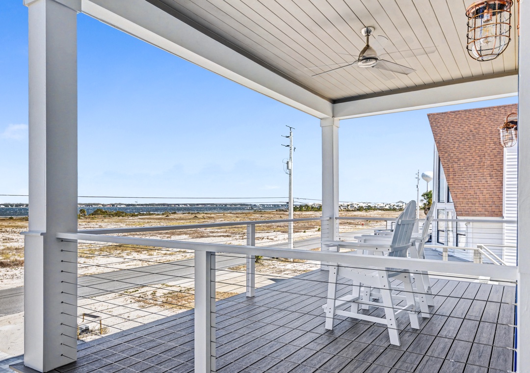 Take the elevator to any floor with ease, then step out to enjoy Gulf and dune views. Don't be scared to climb to the top to see the home’s standout feature—its spiral staircase leading to a prime rooftop viewing platform, offering panoramic scenery over the surrounding homes.