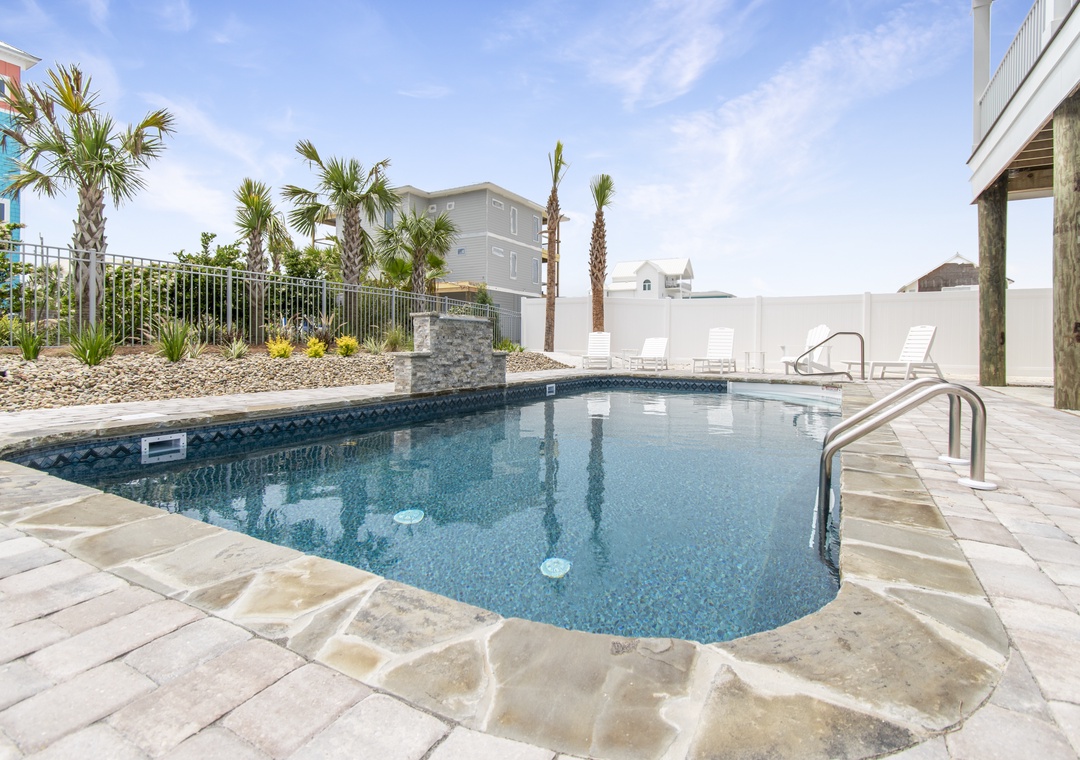 Outside is your private pool with an outdoor shower for rinsing off after the beach and gas grill. The yard is completely fenced in.