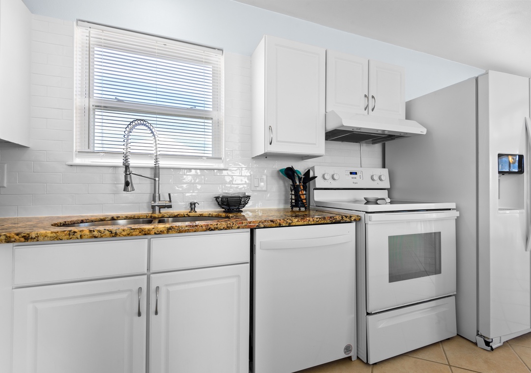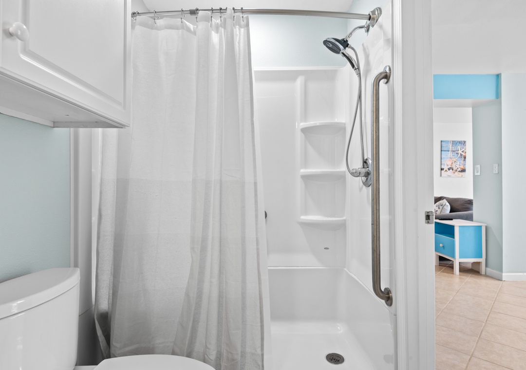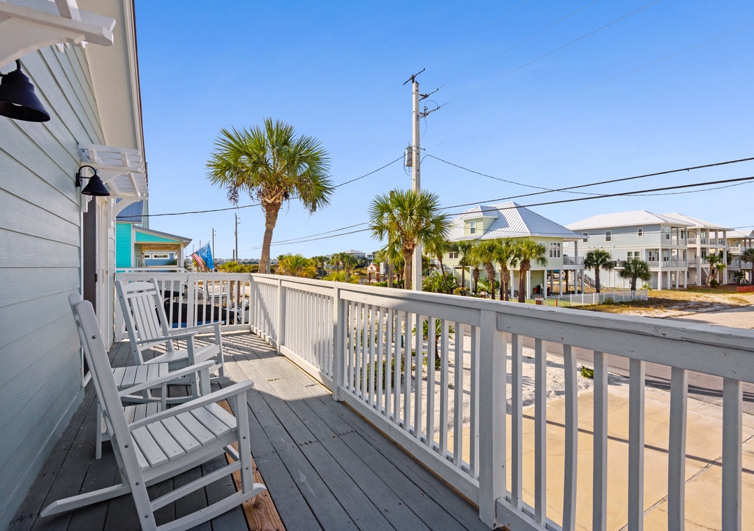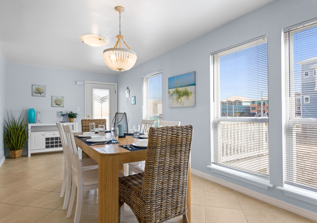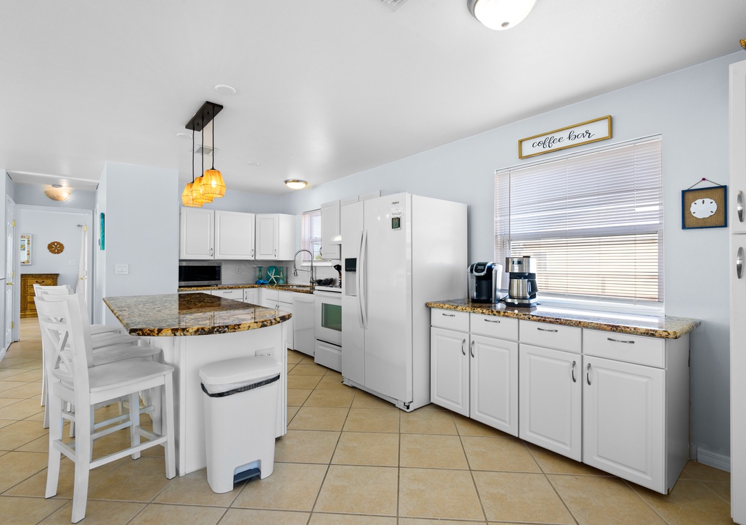 The ground floor includes two guest bedrooms with queen-sized beds. Upstairs, the primary suite offers a king bed and a sleeper sofa in the living room. In the garage, you will find beach gear and a full-size washer/dryer for your convenience. Fire up the propane grill for family meals and enjoy the coastal breeze.