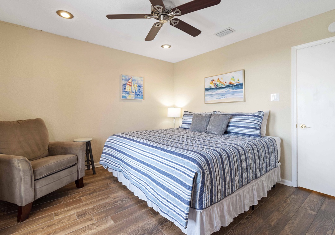 Upstairs you'll find 2 king-sized bedrooms, one with a Gulf view deck and the other with a Sound view deck. Have your coffee looking at the Gulf and your nightcap under the stars or gazing at the amazing sunsets Navarre Beach is known for!