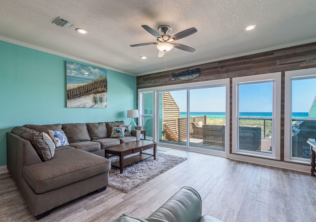 View the gorgeous Gulf waters from 3 decks featuring glass railings. You will think you are outside when in!
