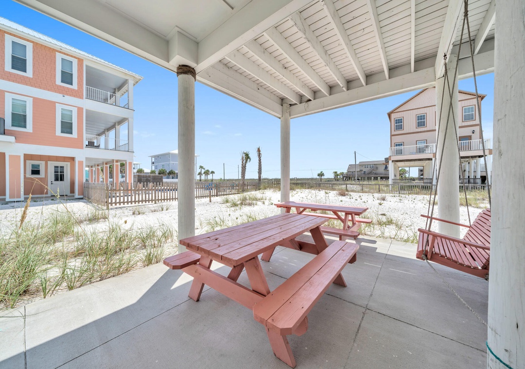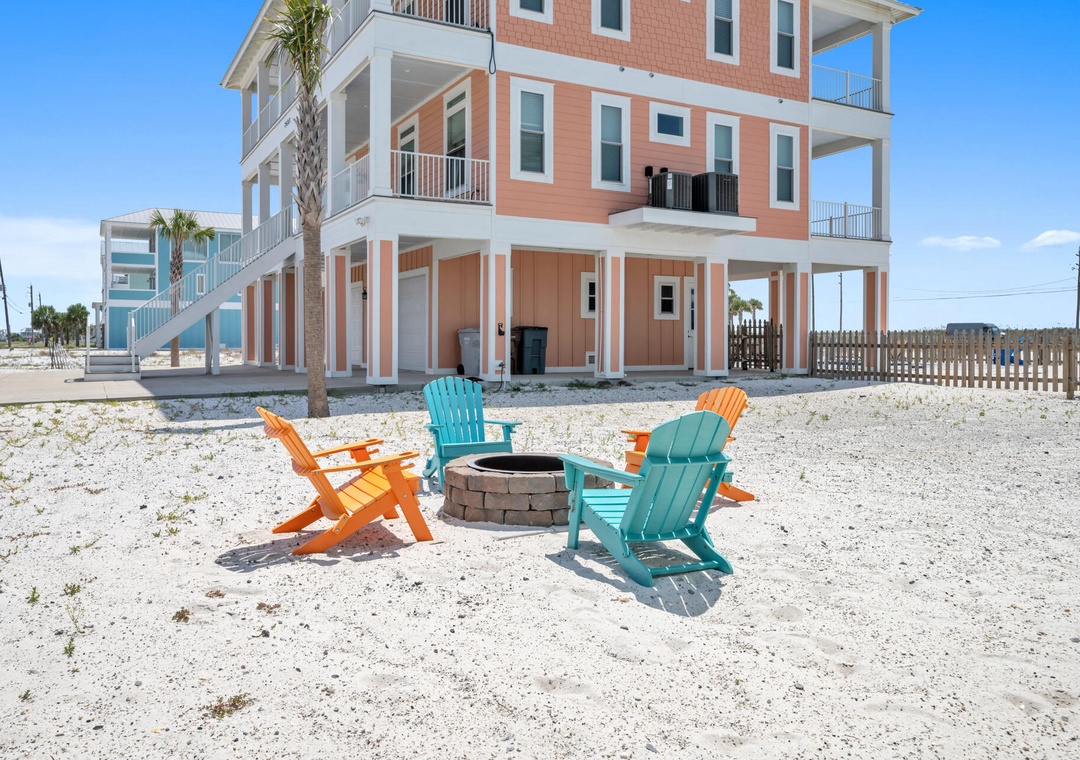 Outside, the allure continues with a sprawling deck and patio area, providing an idyllic setting for soaking up the coastal breeze and hosting unforgettable gatherings. Imagine evenings spent gathered around the fire pit, swapping stories under the stars, or lounging on the swing with a refreshing beverage in hand.