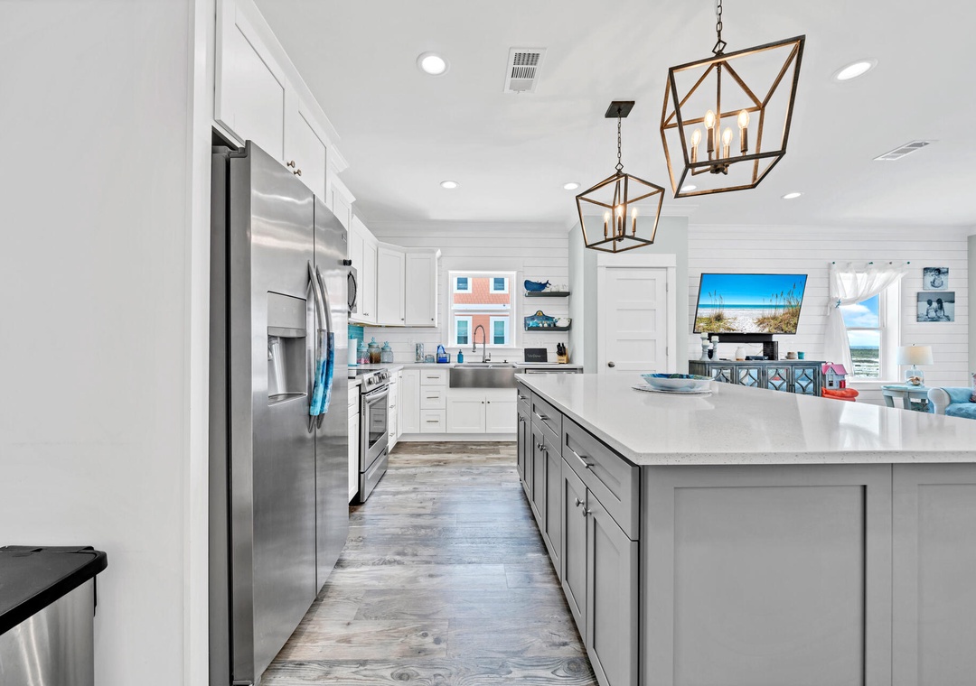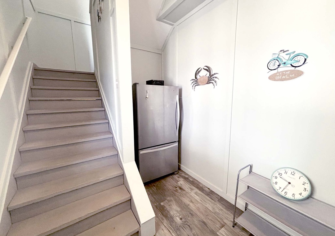 For added convenience, a full fridge awaits on the ground floor, ready to store beach beverages and barbecue essentials.