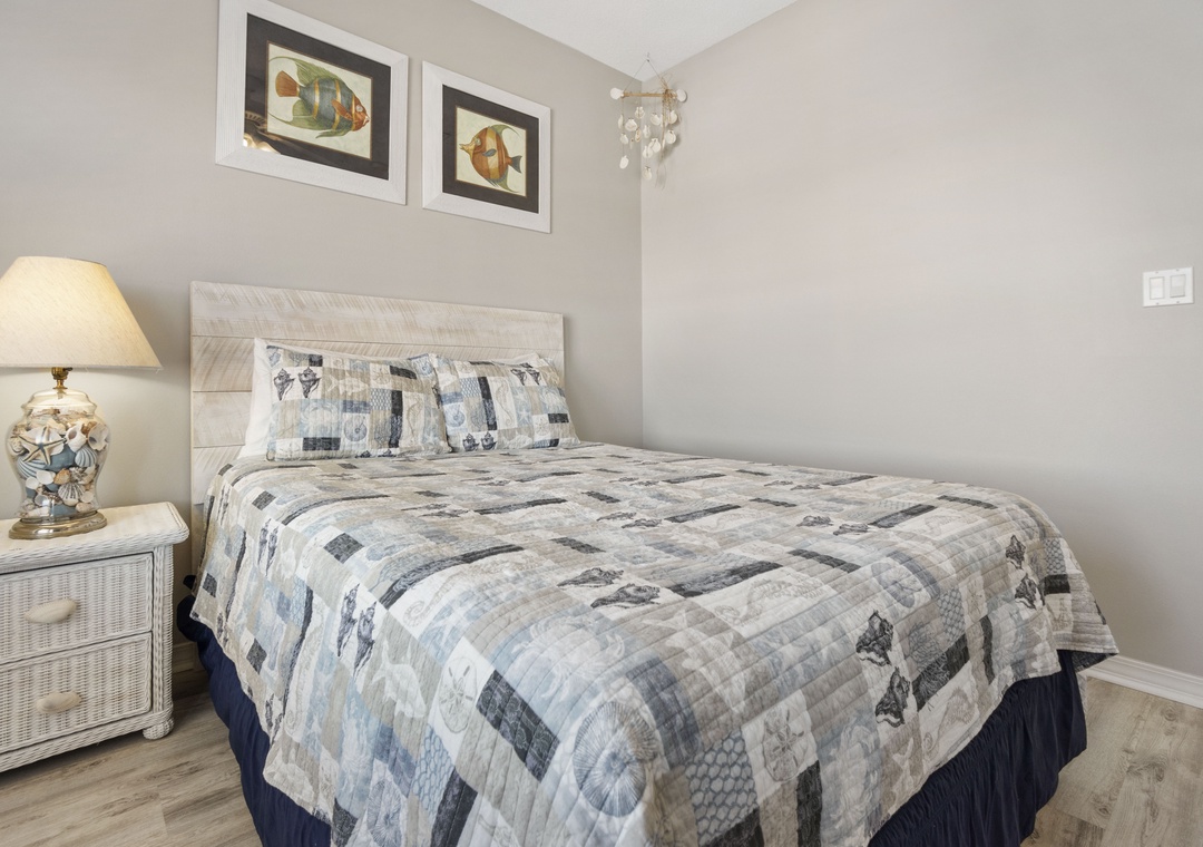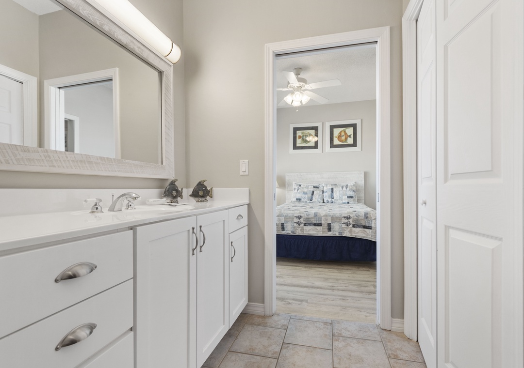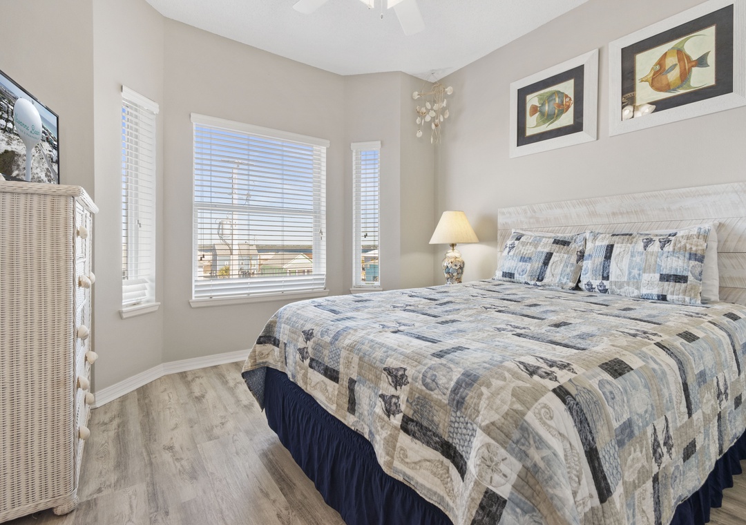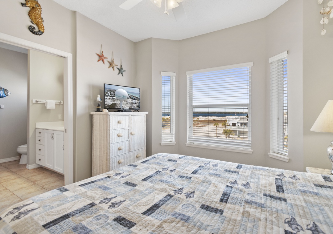 The third bedroom has a queen-sized bed and private bath.
