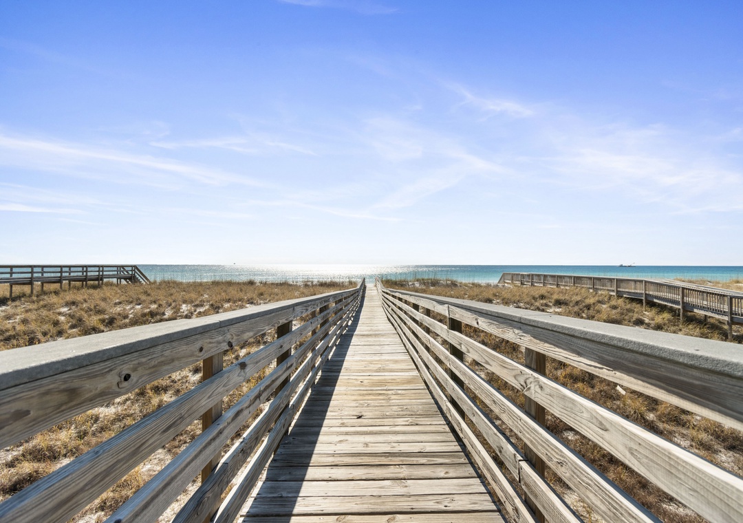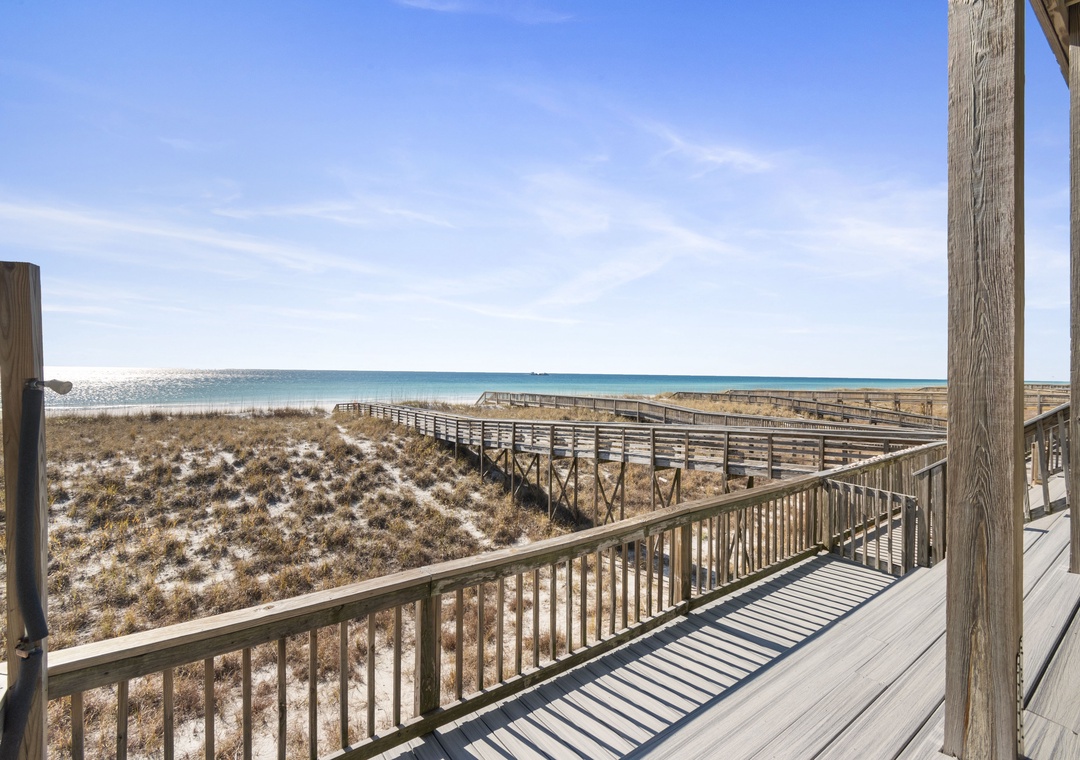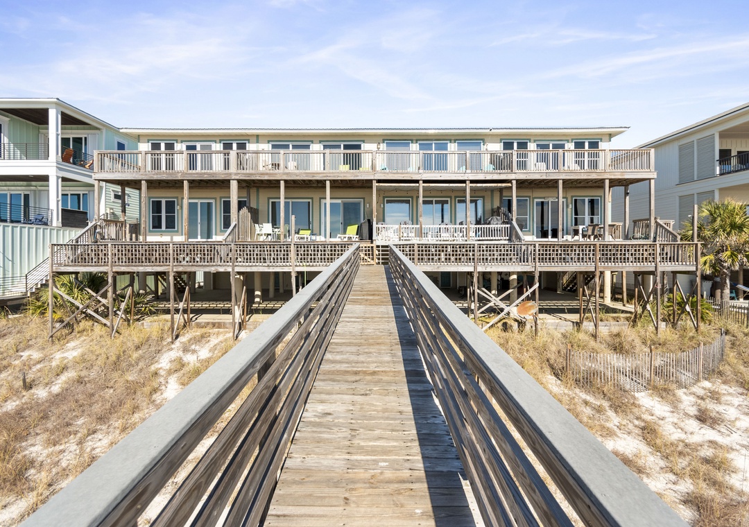This is a flawless rental property. It's a beautiful, spacious, tastefully decorated 3-story unit unit (one of 4) with every detail covered. The property couldn't be closer to the beach: the short boardwalk to the beach connects to the front porch. You can make a roundtrip to and from the water in 4 leisurely minutes. We loved being able to look out from the balcony and porch and easily see our group. When we had a minor issue with the coffee maker, the property manager was at our door in 5 minutes with a new one. The corner location makes for gorgeous views all day long. This is the best beach rental we've ever had. Thank you!- Reviewed On: 7/31/2022
