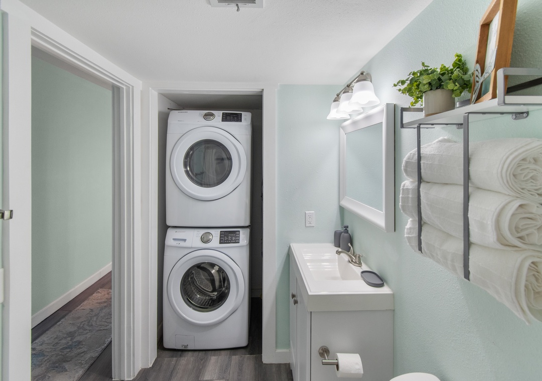 · One Bathroom with Shower/Tub Combo & Full-Sized Washer/Dryer