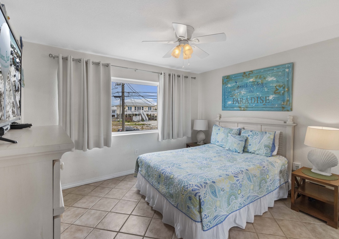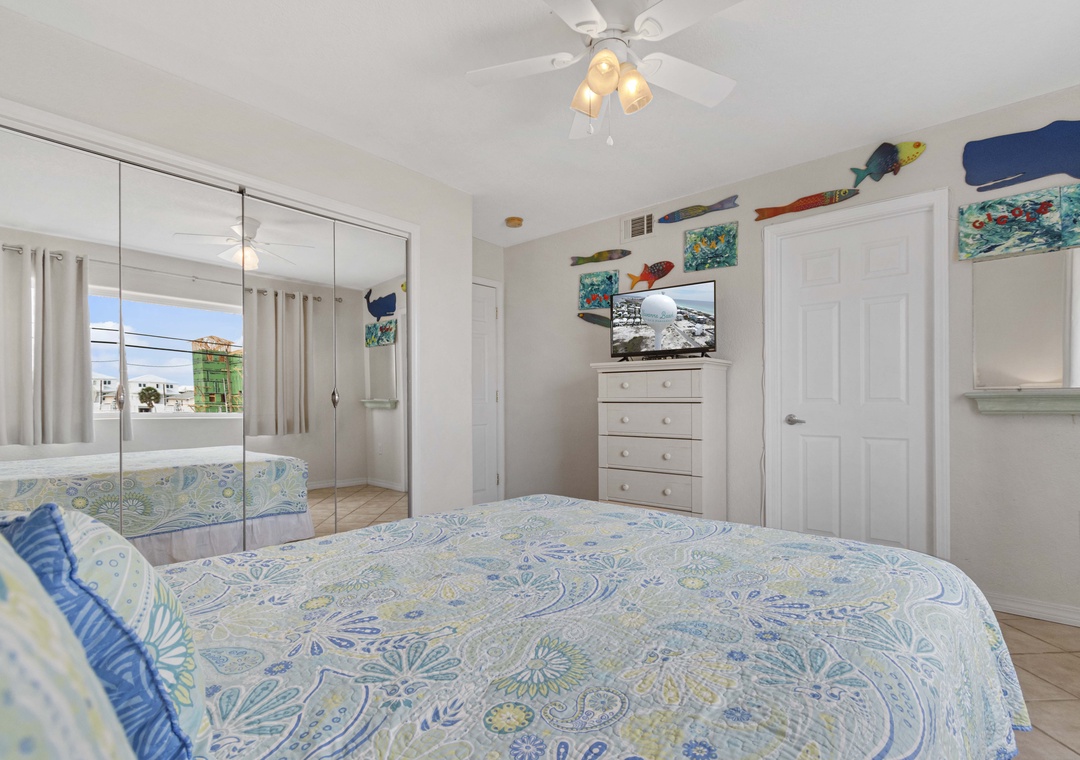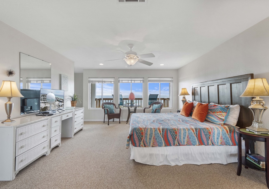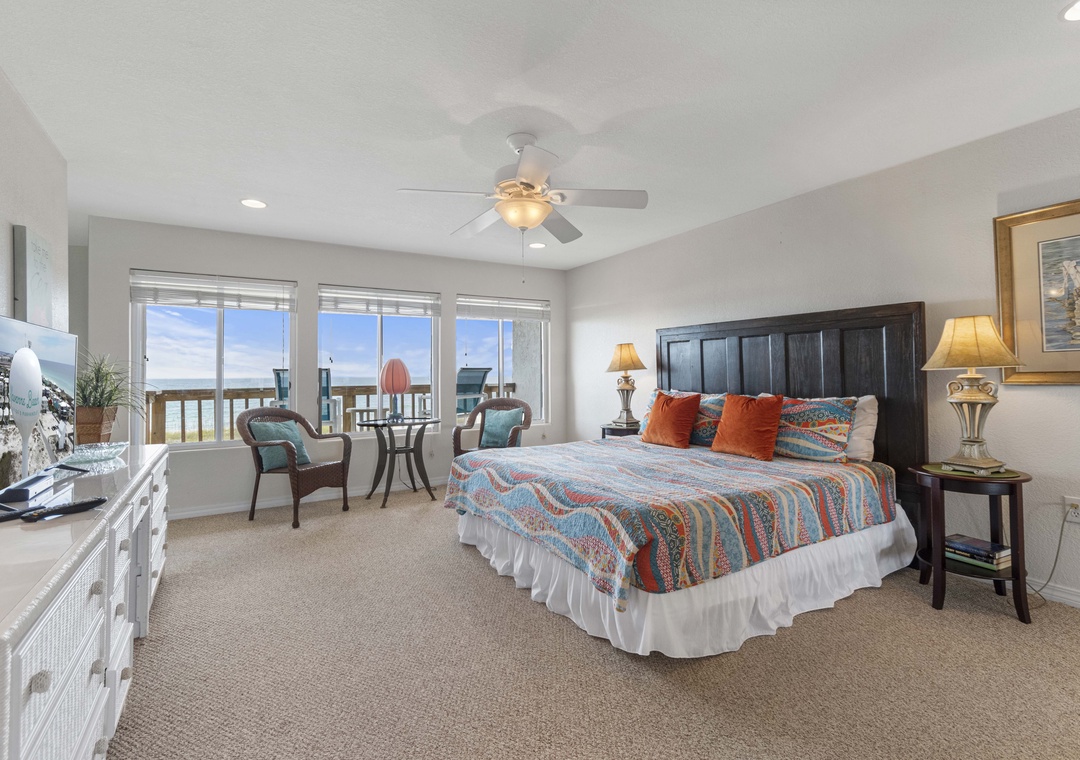 This home comfortably sleeps 10, with each bedroom having its own private bath. The huge third floor king-sized primary suite has a private balcony where you can watch the dolphins play while having your morning coffee.