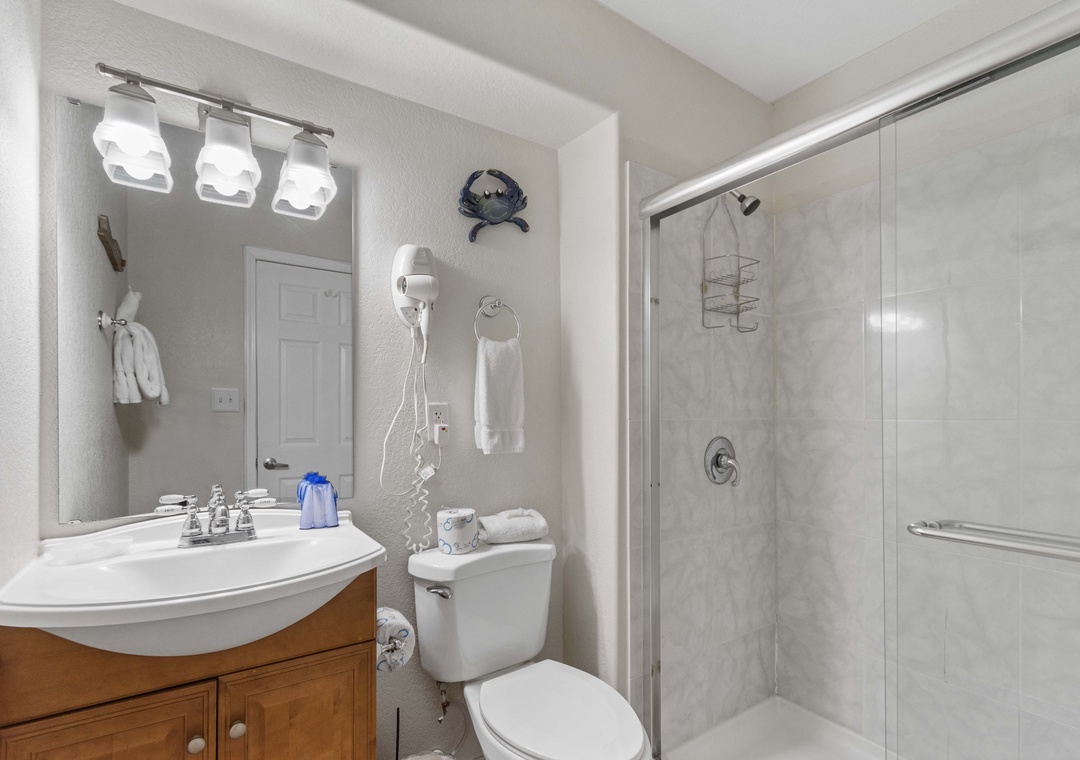 Sort your treasure of collected sea shells and rinse the sand off in the outdoor shower on the shaded ground floor deck. There is also a gas grill here for your use.