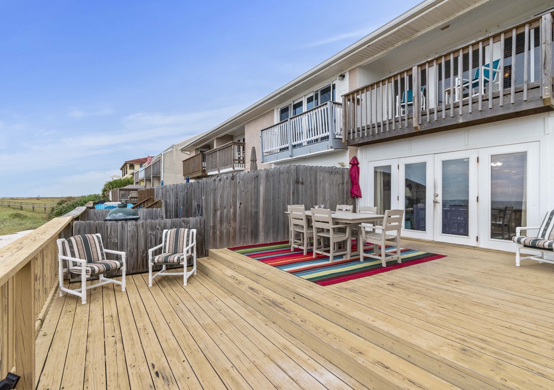 We have stayed here twice and plan to come back year after year. This is where we celebrate our wedding anniversaries. It doesn't get any better than this townhouse & location. You look out your living area at the beach. Sit on the deck and see the beach. From the master bedroom you can sit on the balcony and see the ocean. At night we open the windows to feel the ocean breeze and hear the waves. It is our home away from home. Even our small dogs love to play on the sandy area in the back below the deck. The property is clean, well maintained. The property managers Al & Jeanette are so accommodating. The photos accurately reflect the beauty of this townhome. Better book early!- Reviewed On: 6/3/2014