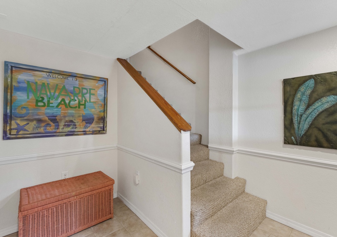 This townhome was perfect for us (6 women on a girl's getaway). It has been recently updated, so the place is really clean. It is in the residential part of the Navarre beach, a few blocks from the National Seashore. If you are looking to get away from the crowds, this place is perfect. It's a haul into town, but that's the cost of being secluded. The kitchen is great and fully stocked; there is a charcoal grill on the deck. The deck is perfect for your morning coffee. Each bedroom has its own full bath. One Queen bedroom on the first floor; upstairs is the Master with a king bed and a balcony overlooking the gulf; one other BR with two full beds and a day bed. Plus there was a rollaway and a sofa bed. Check with the rental agent regarding what items will be provided, and your check out time (which is way too early) -- he was very helpful.- Reviewed On: 4/25/2011