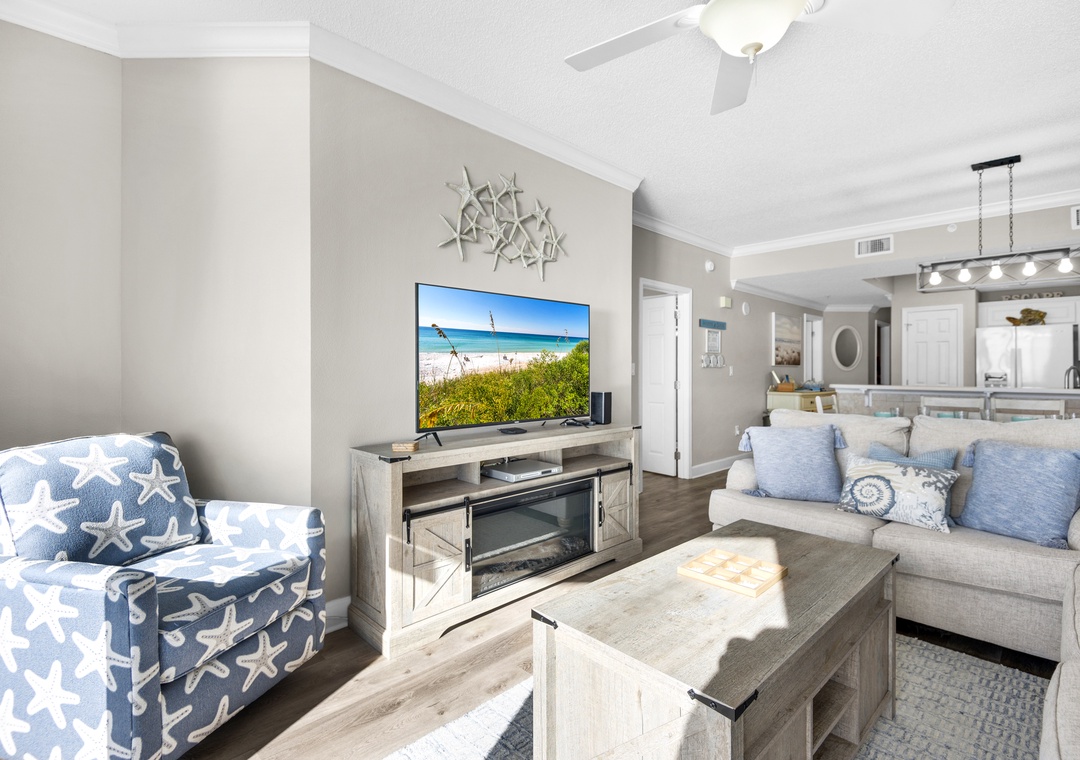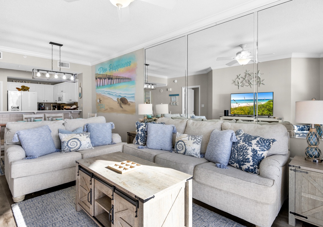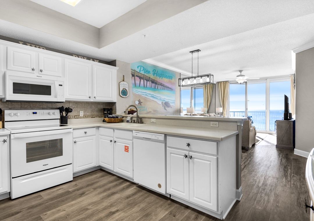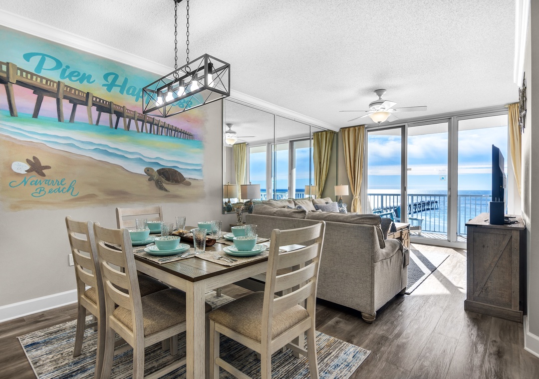 Welcome to Pier Happiness, the perfect vacation condo for families and friends, directly on the sugar-white sands of the Gulf! This 3-bedroom, 2-bathroom vacation home features a beautiful living room, kitchen, dining area, and perfect gulf beach views throughout.