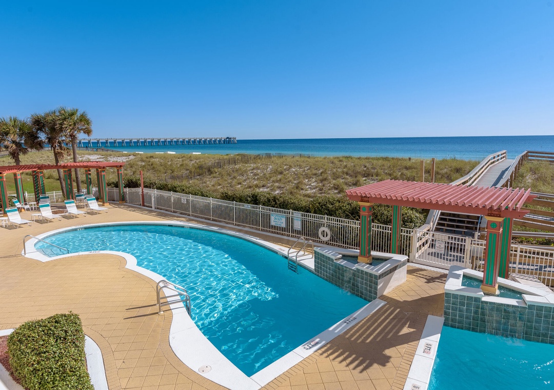 Rating Details: The property manager was very helpful. The vacation rental was very clean. I was very happy with the location. I was more than satisfied with the condition of the vacation rental. Overall, I recommend this vacation rental. Reviewer Comments: The condo had everything we needed for a family of four adults. The beds were comfortable and the condo was pretty clean. (We had a few minor issues with the condo that management promptly took care of.). We were there over the Fourth of July, so it was busy. However, the beach did not feel crowded at all. The beach chairs that came with the condo were great. We also enjoyed the pub style table and chairs on the balcony-they made it easy to see the spectacular views over the railing. The location made it easy to walk to the pier every night and was close to restaurants. We did not use the pool (we love the beach), but it looked lovely and well cared for. The entire property was in great shape. At prime times taking the elevator was slow, but most of the time it took no longer than a few minutes. I would recommend this condo to friends.- Reviewed On: 7/24/2022