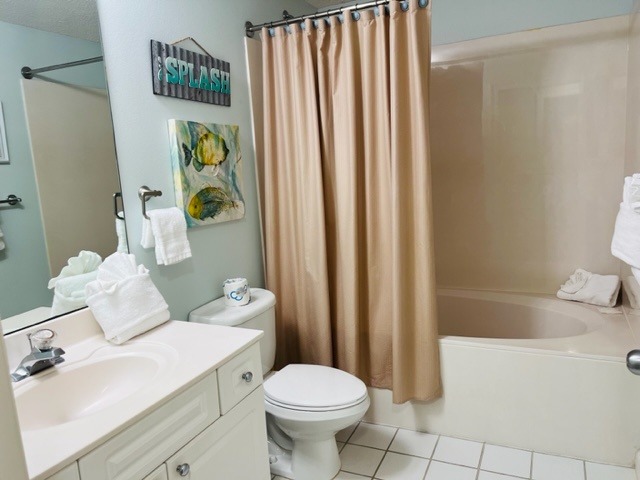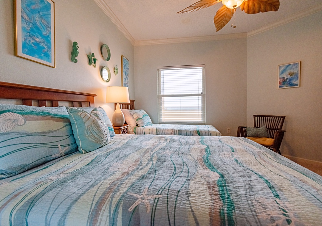 The second bedroom has a queen and a twin which will sleep 3 comfortably. Another full bath (tub/shower combo) is just outside in the hall.